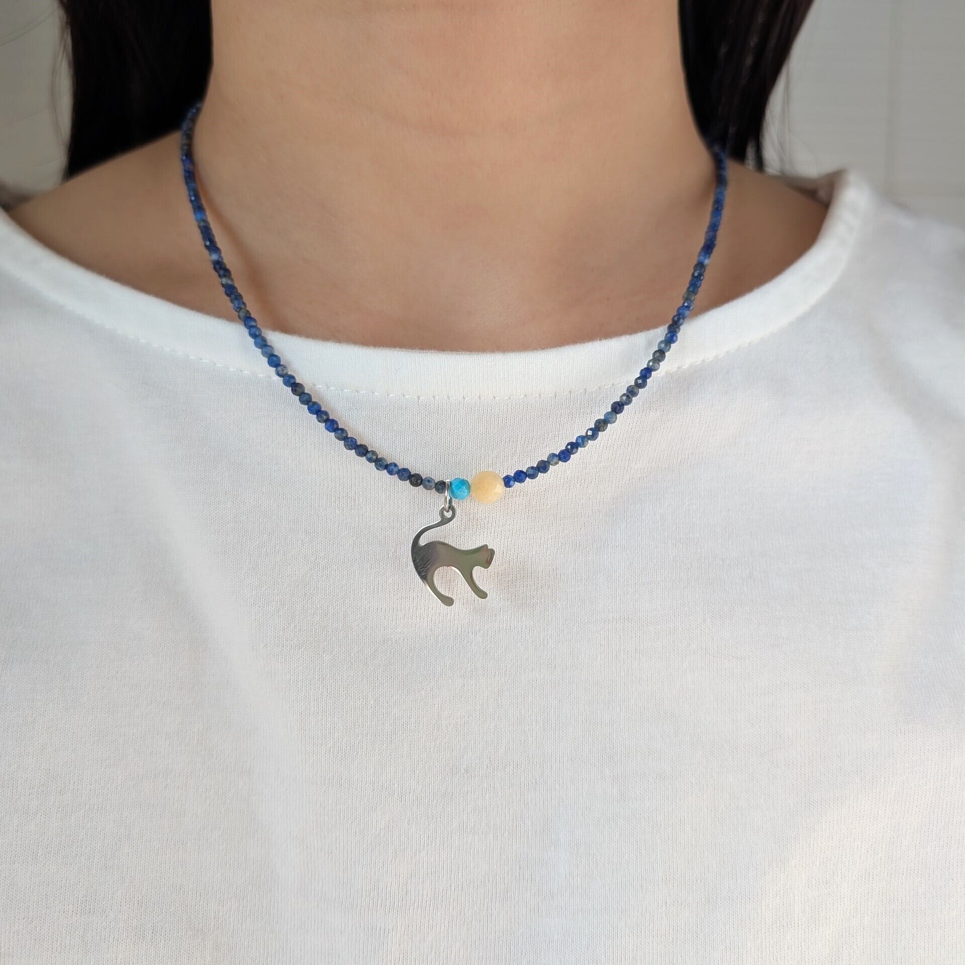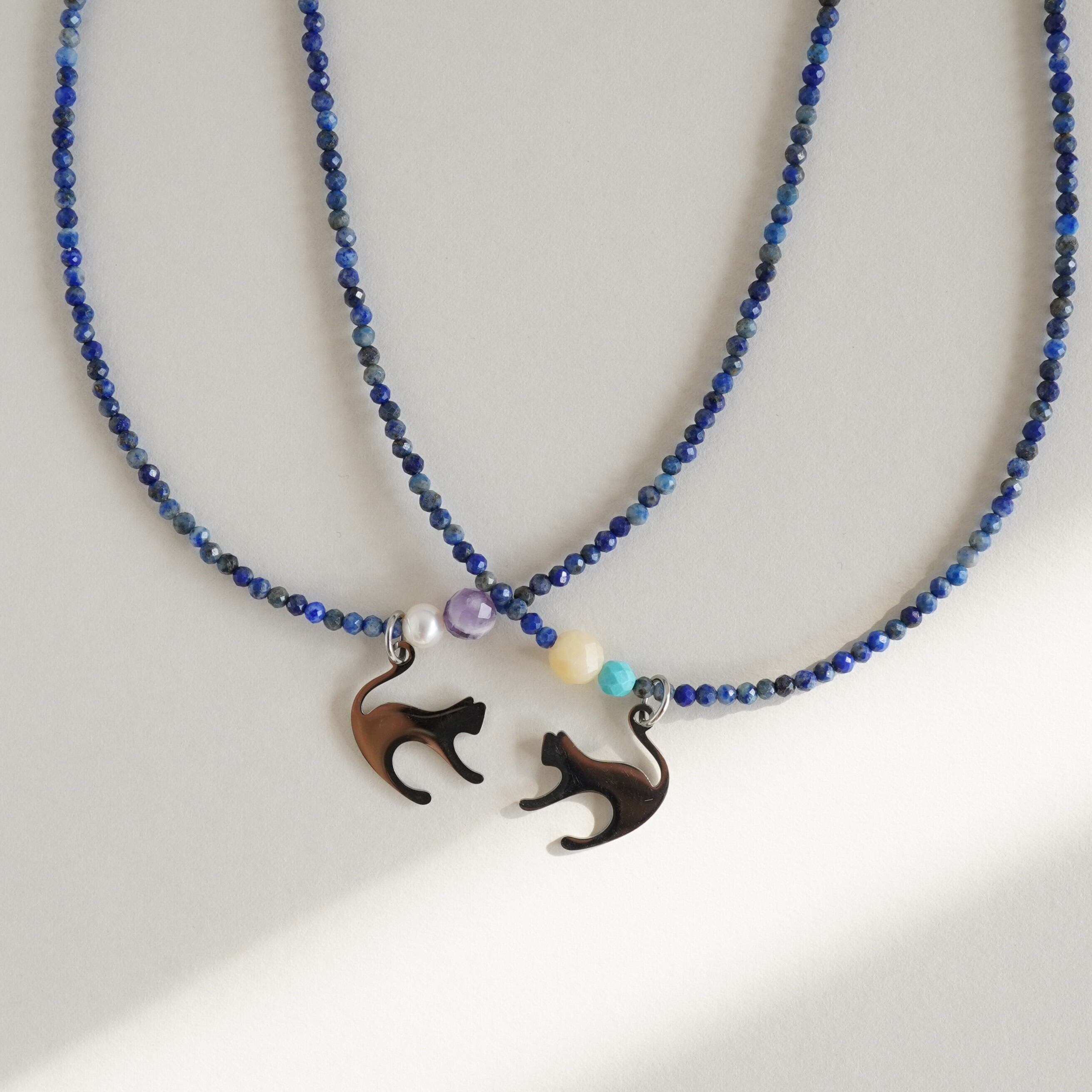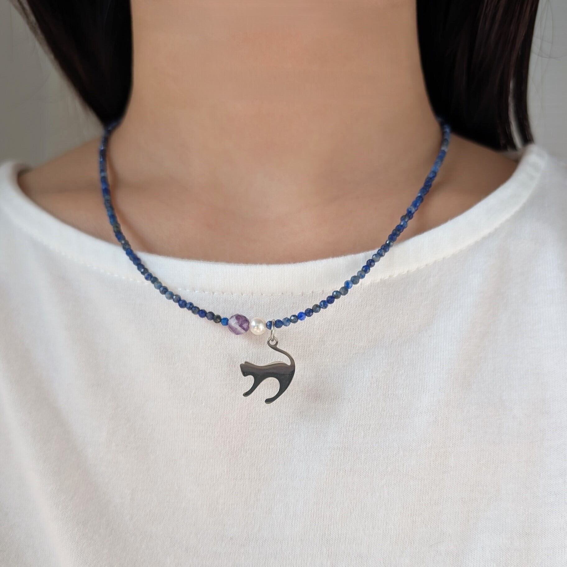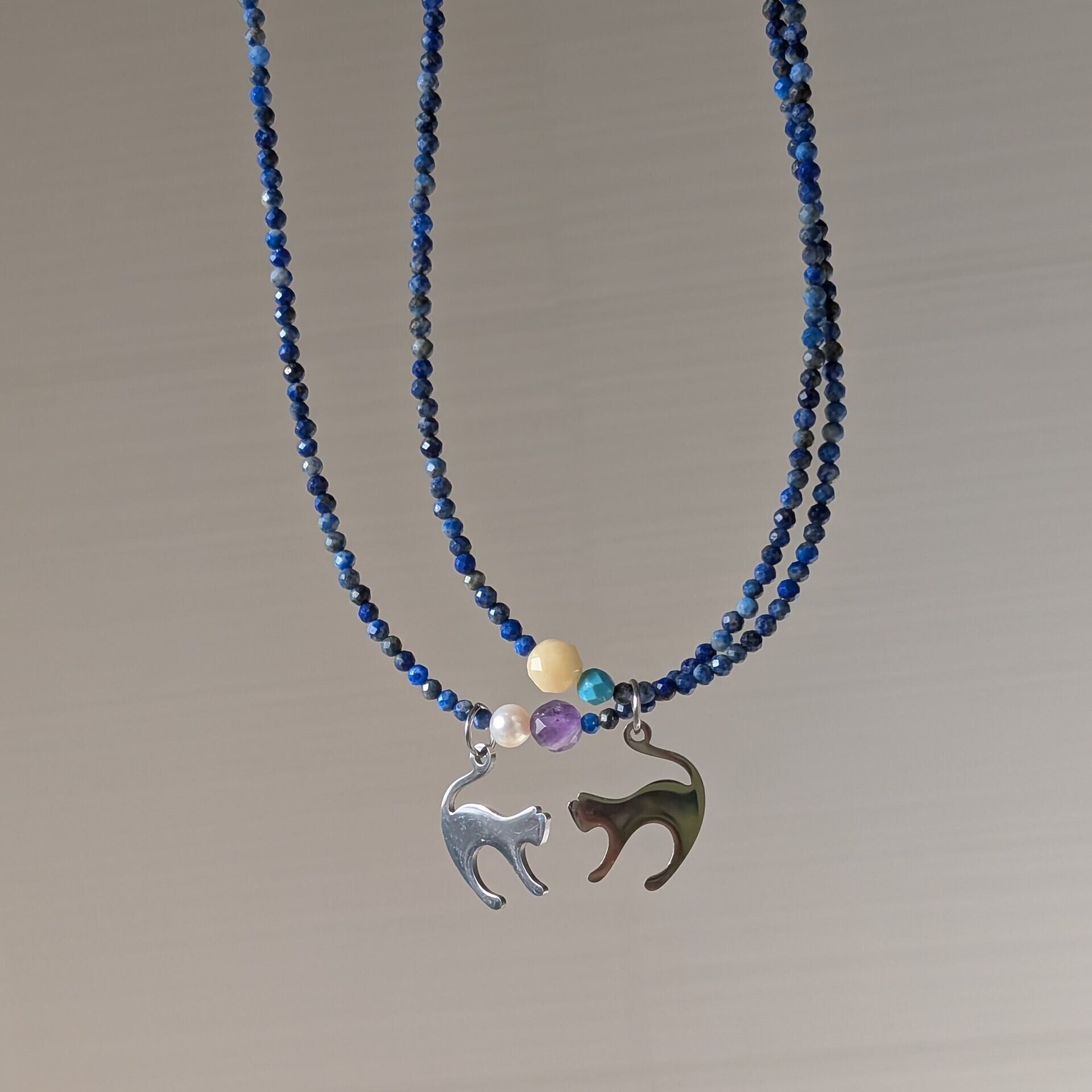 【2way】猫ちゃんとラピスラズリのネックレス ALLステンレス製