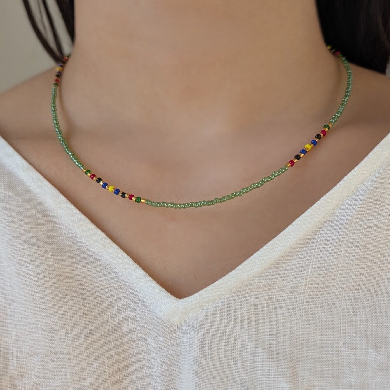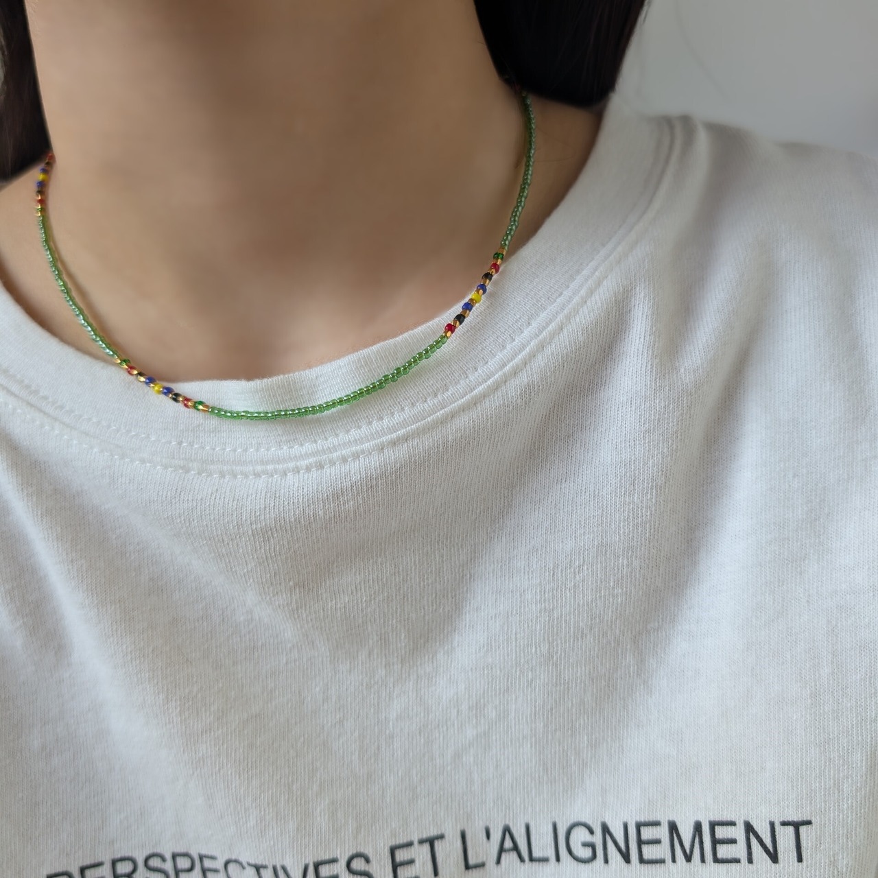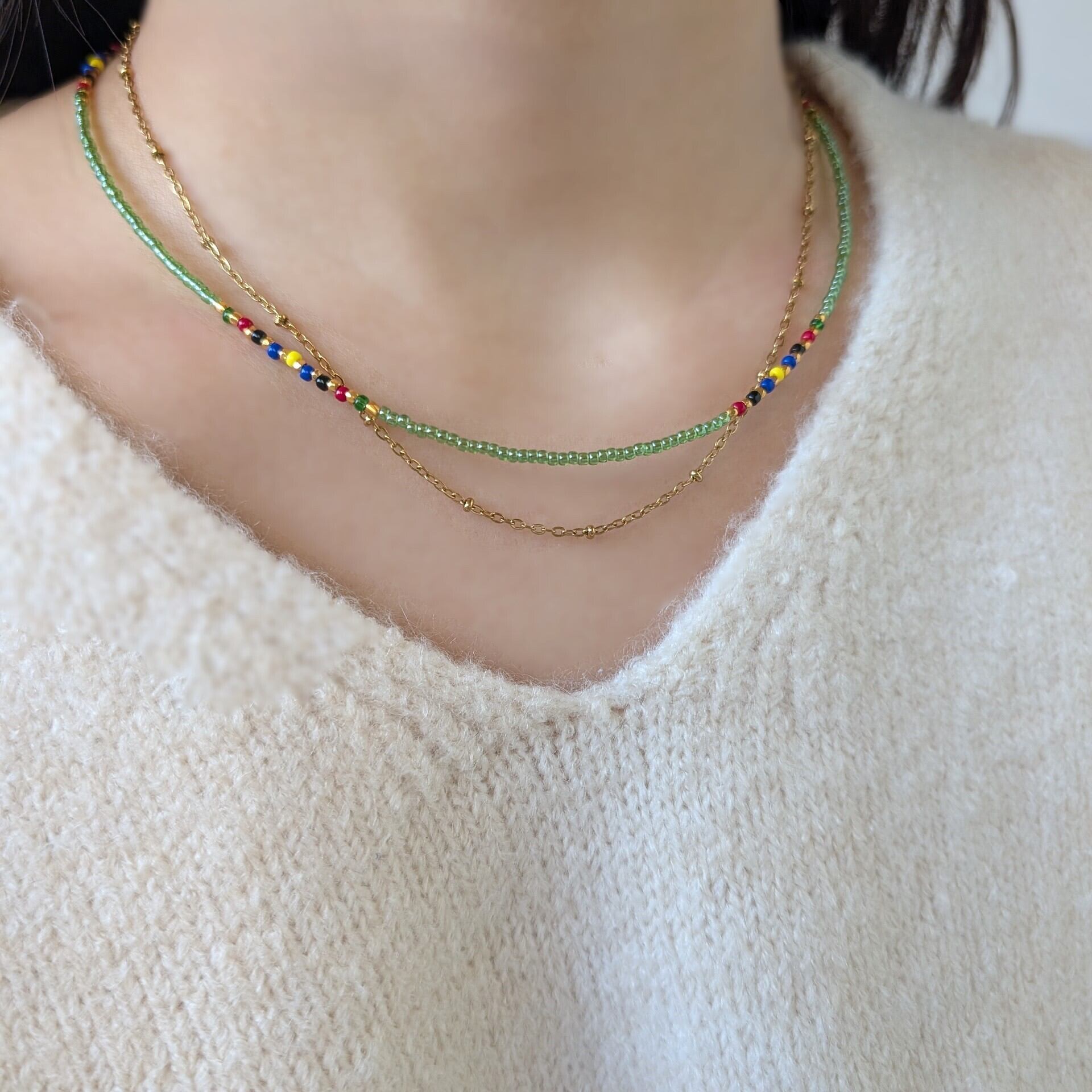 グリーンヴィンテージビーズのネックレス ステンレス製