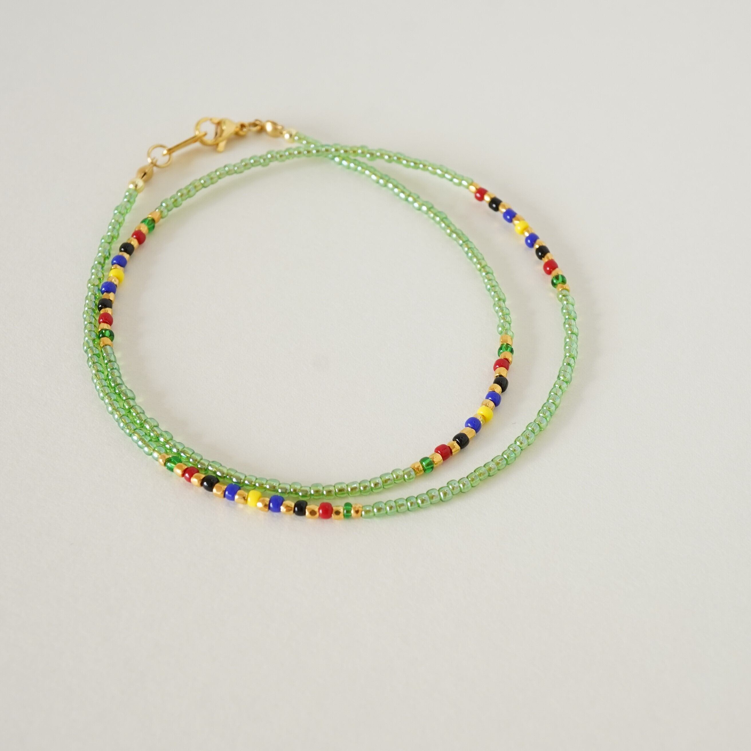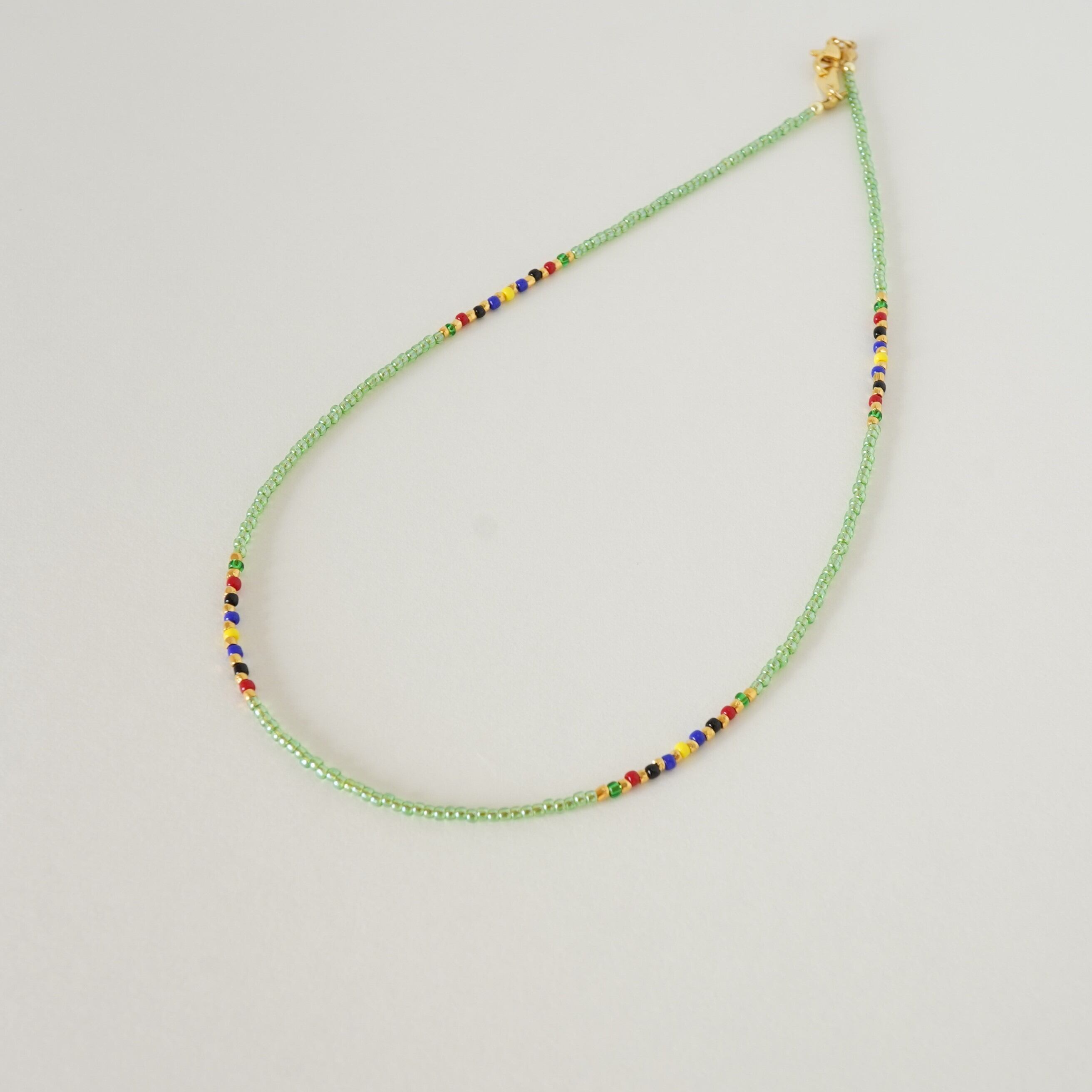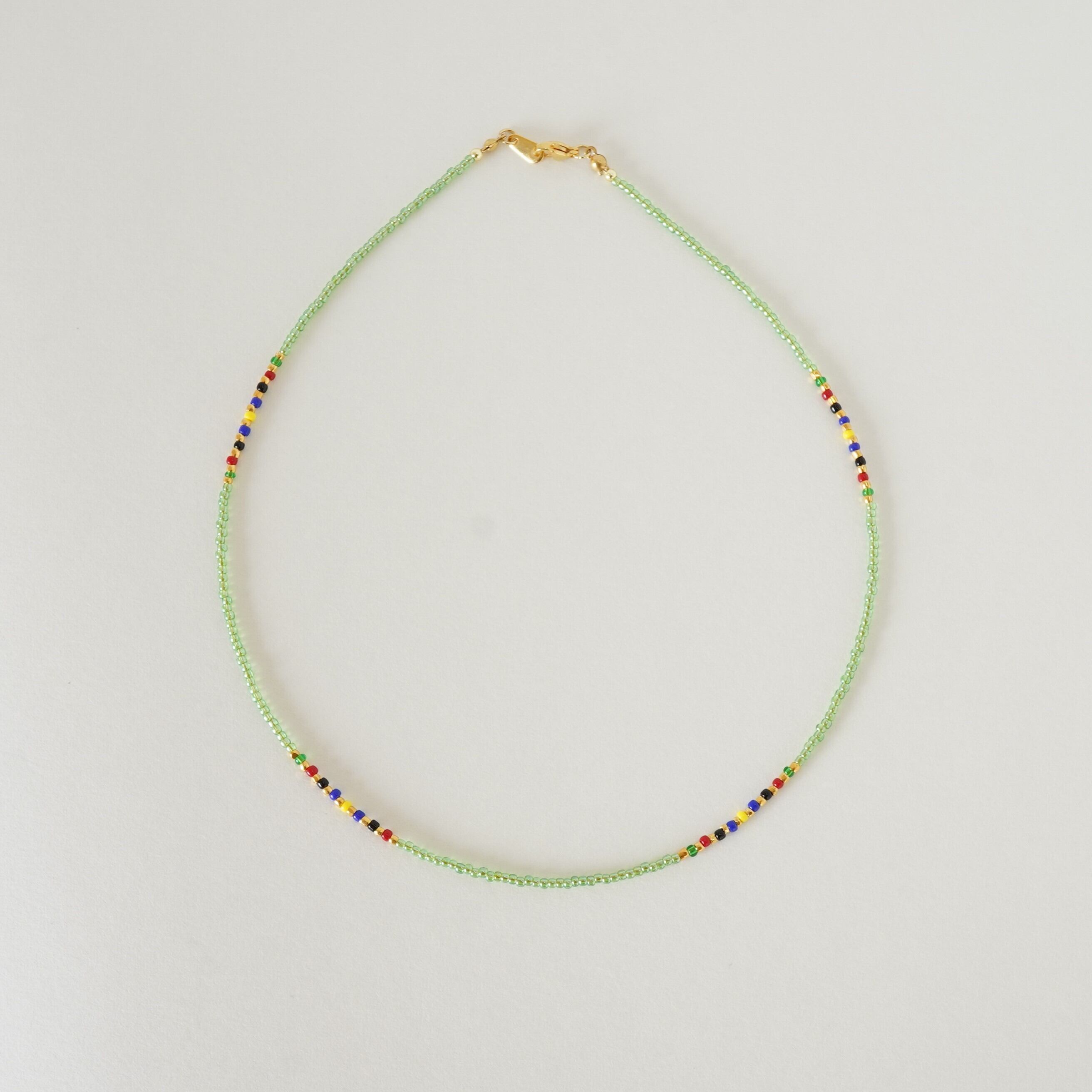 グリーンヴィンテージビーズのネックレス ステンレス製