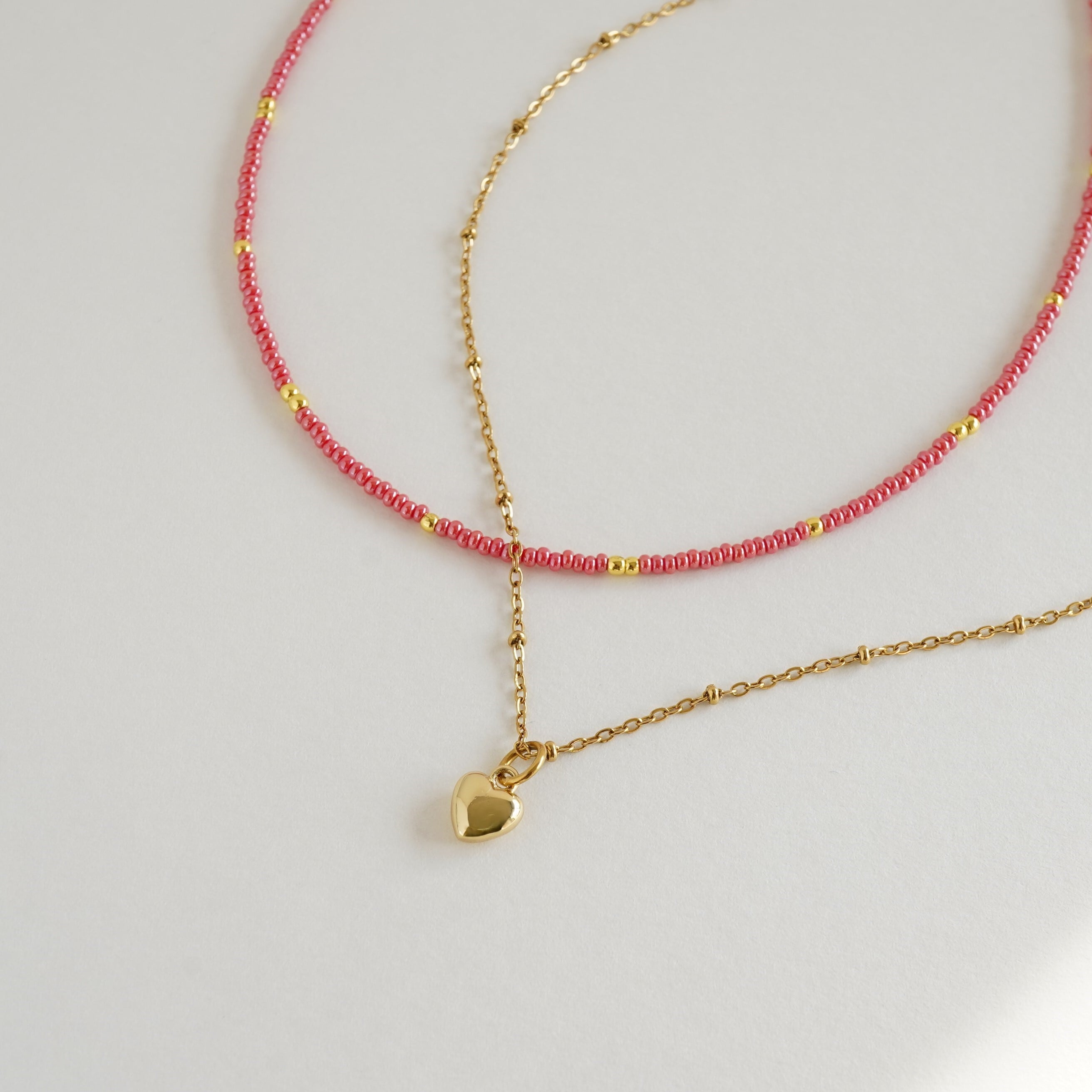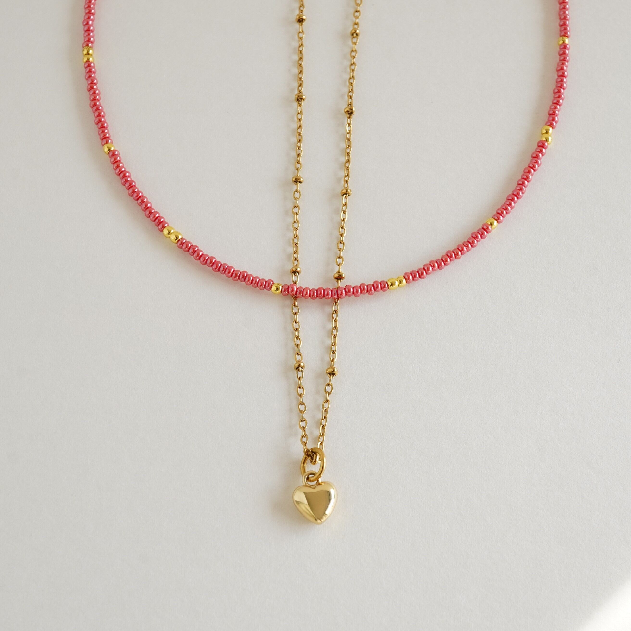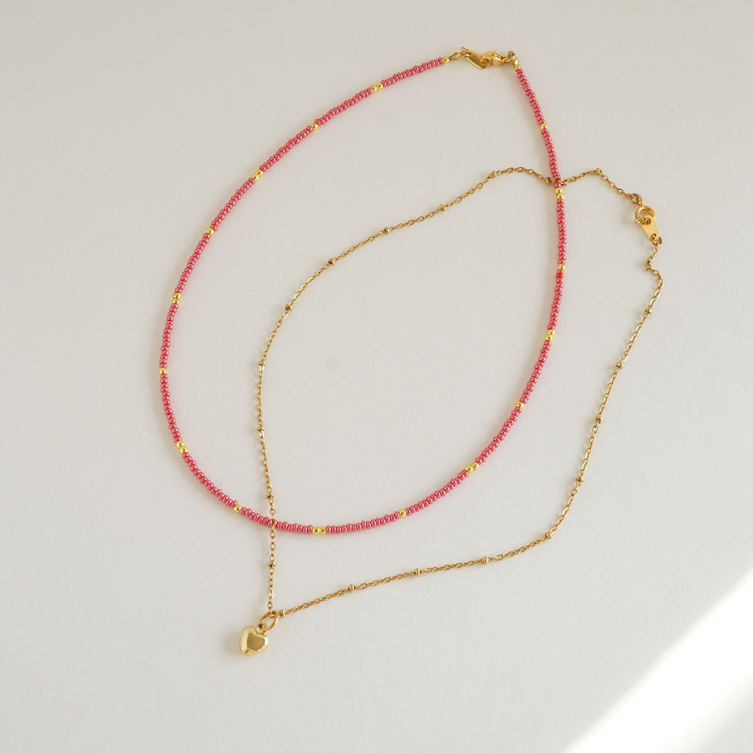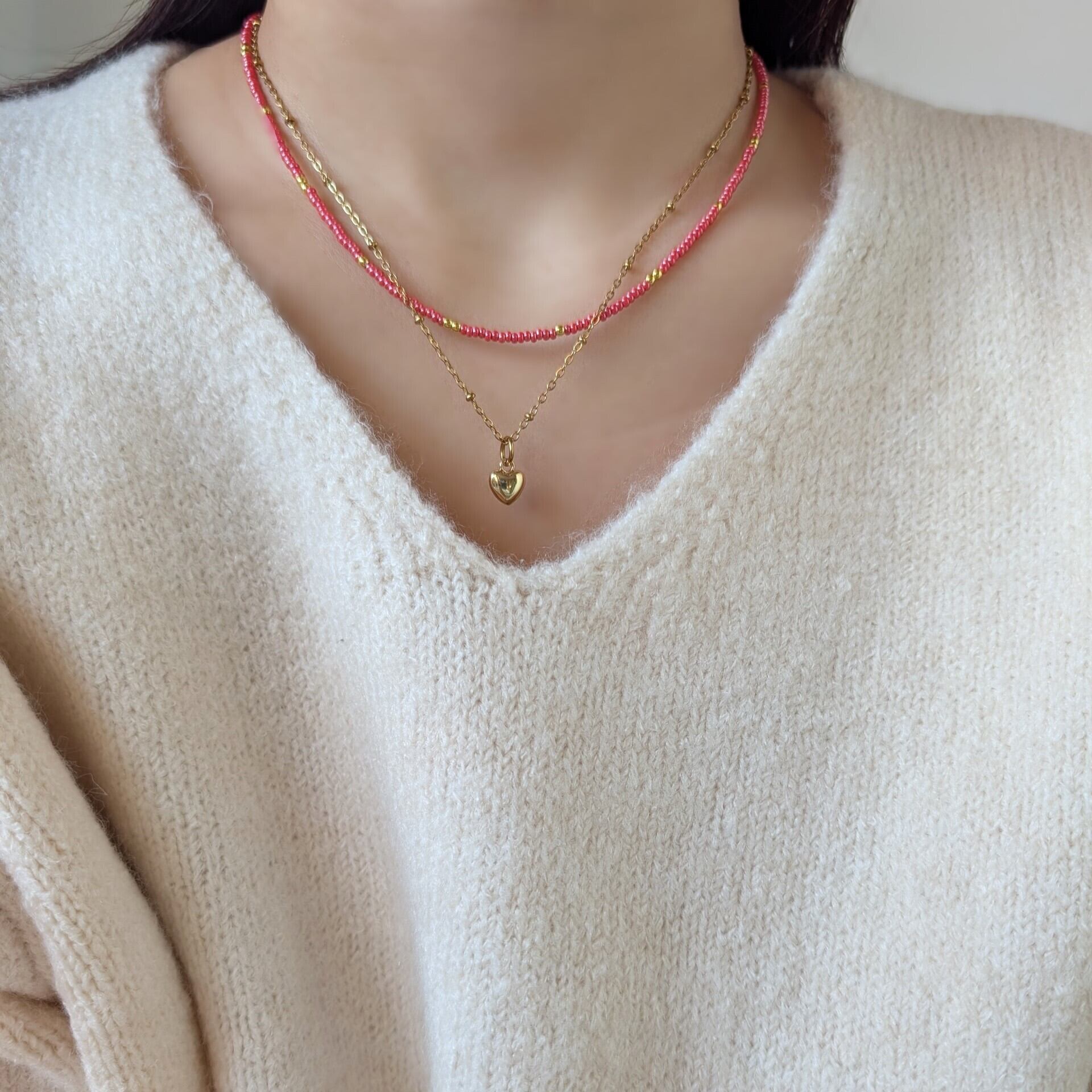 ①ビーズネックレス+ハートのチャーム