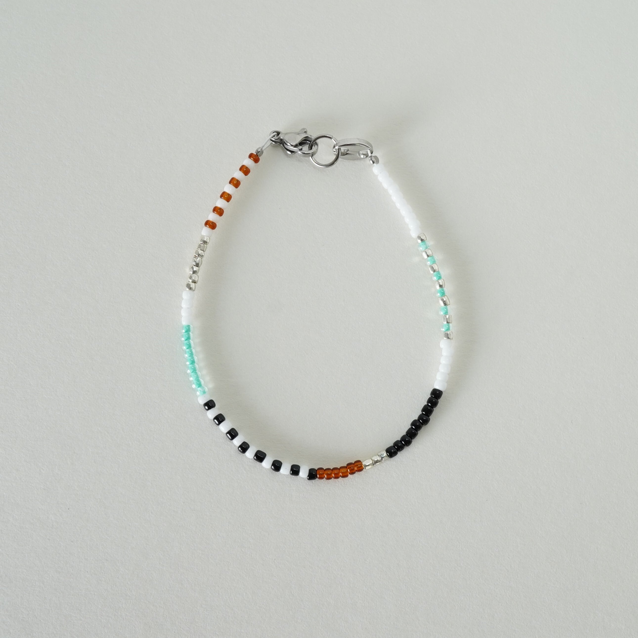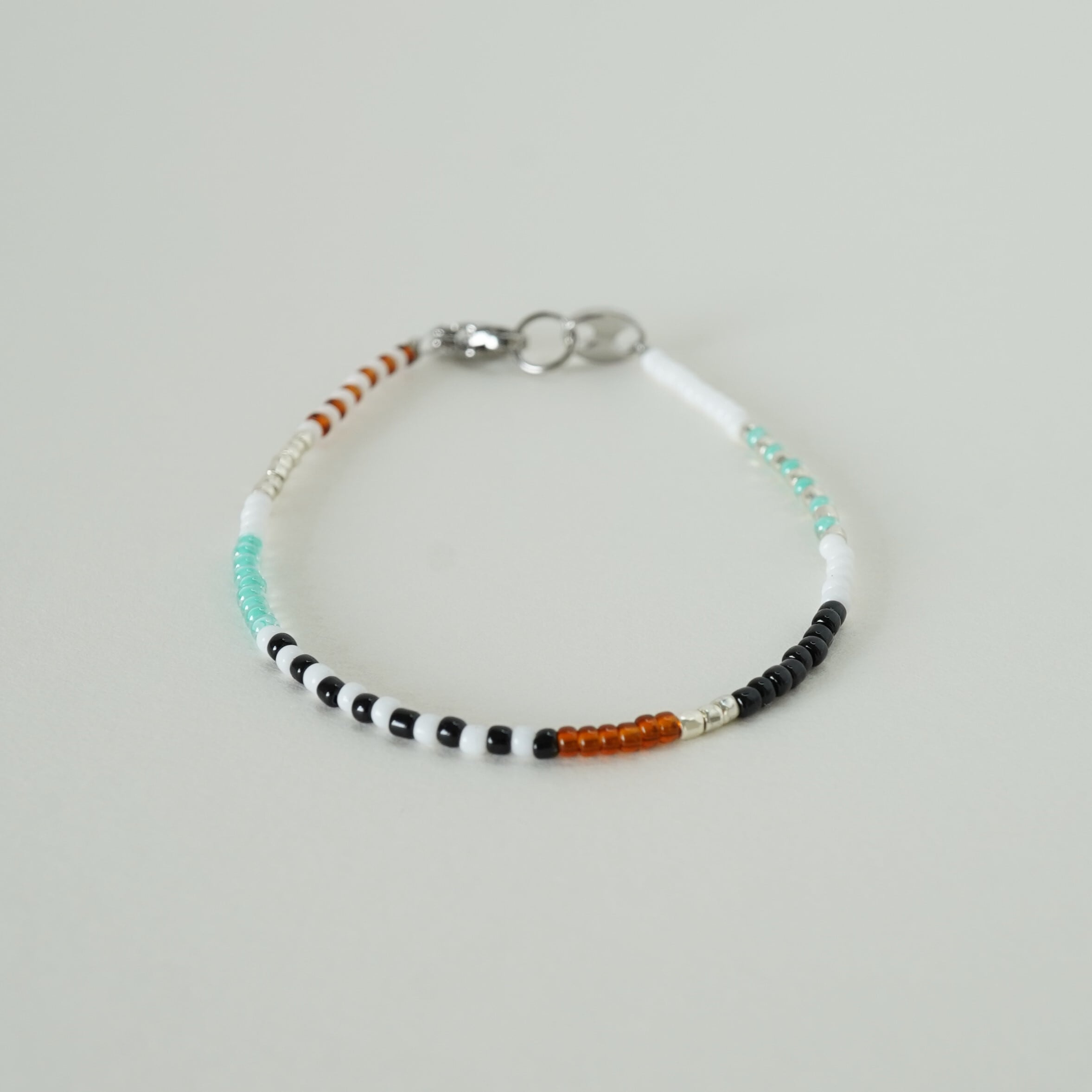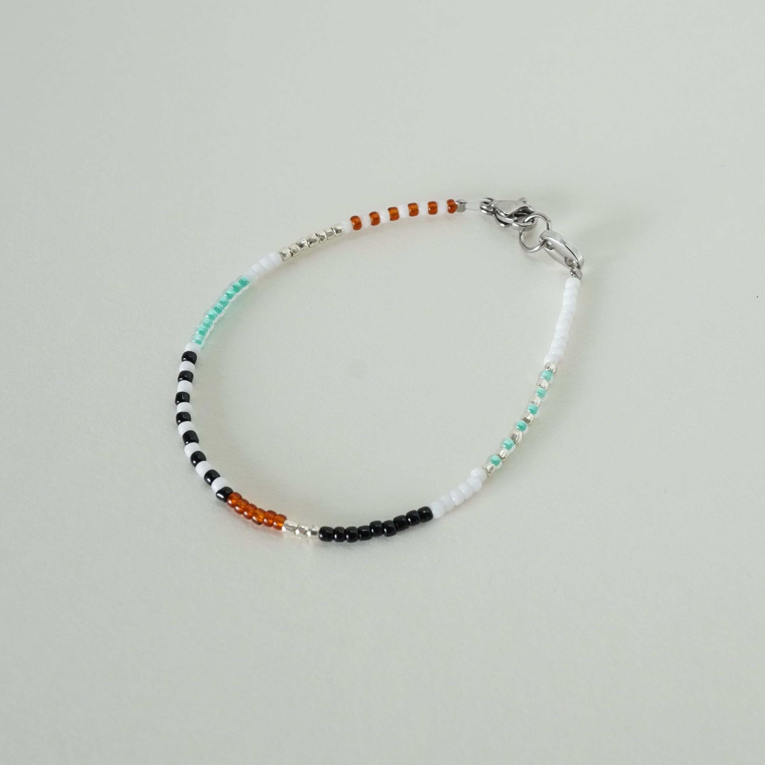 2㎜のビーズを使用。細めで個性的。大人が楽しめるビーズブレスレットです。