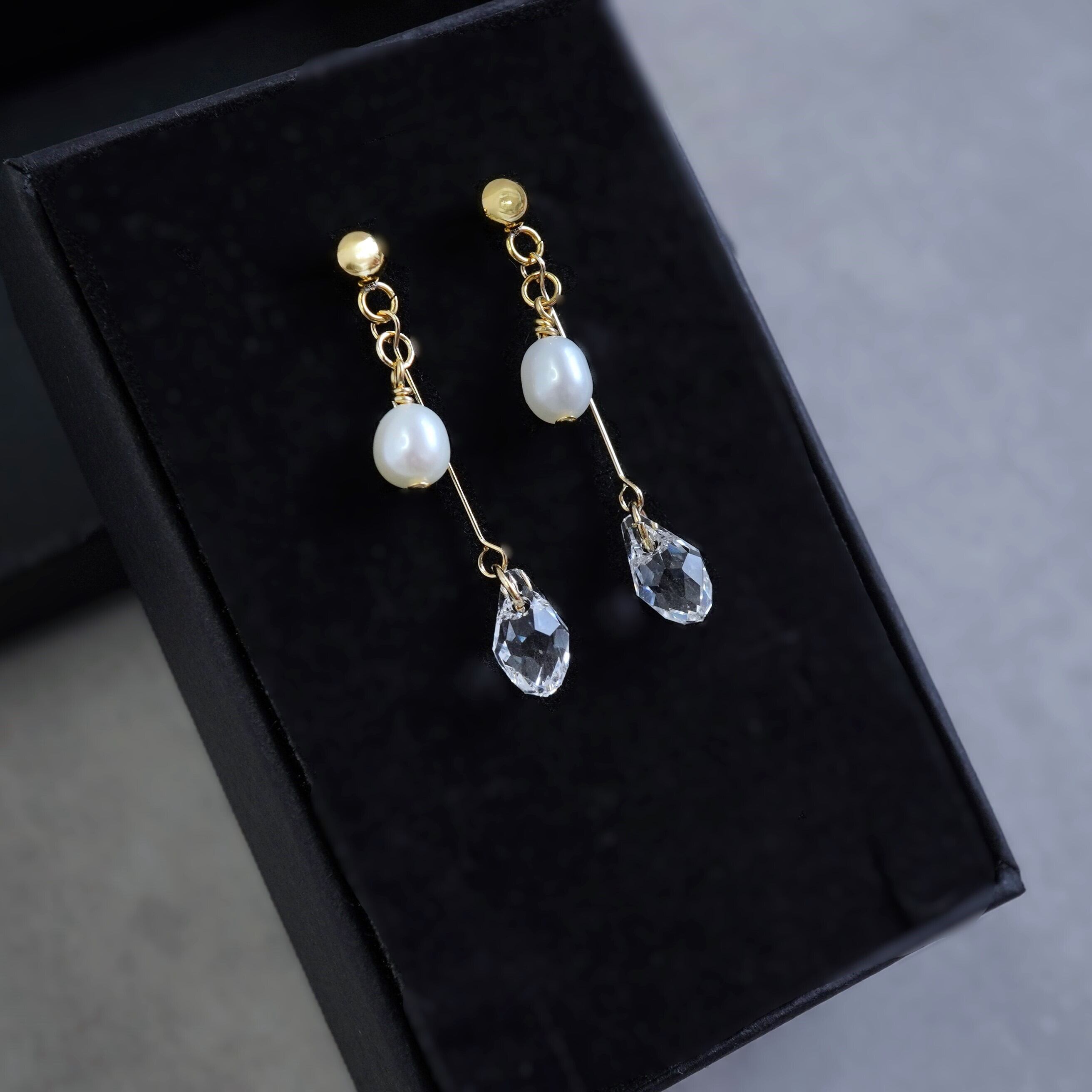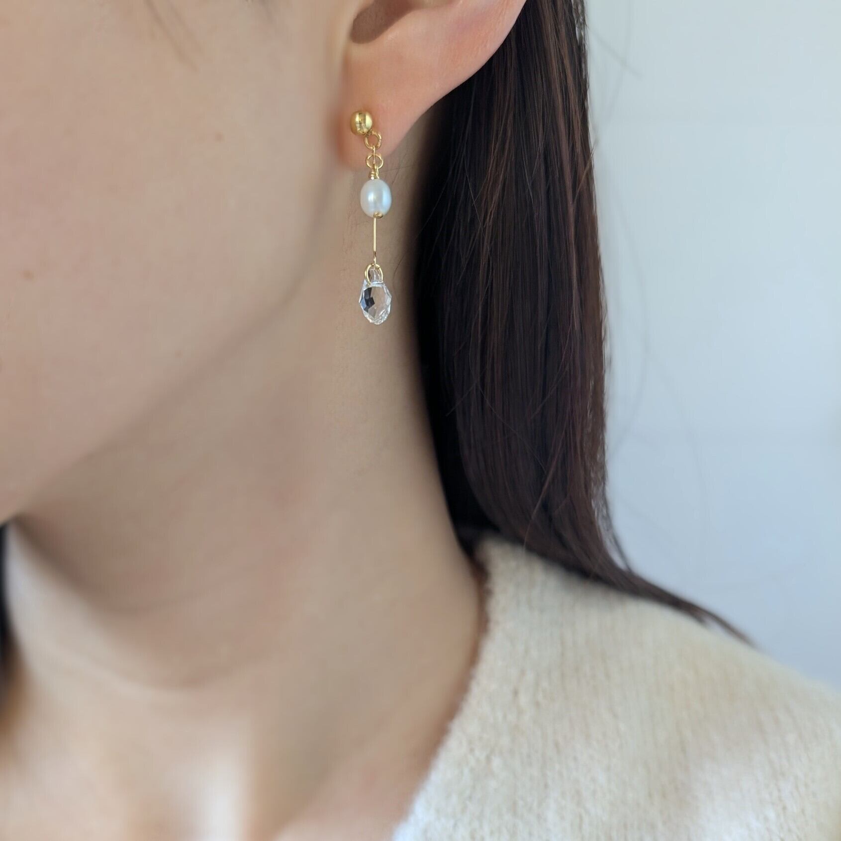 高品質 淡水パールとクリスタルガラスのピアス