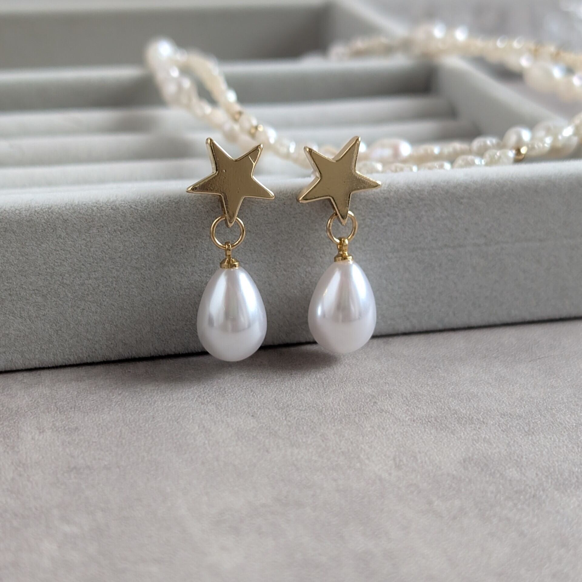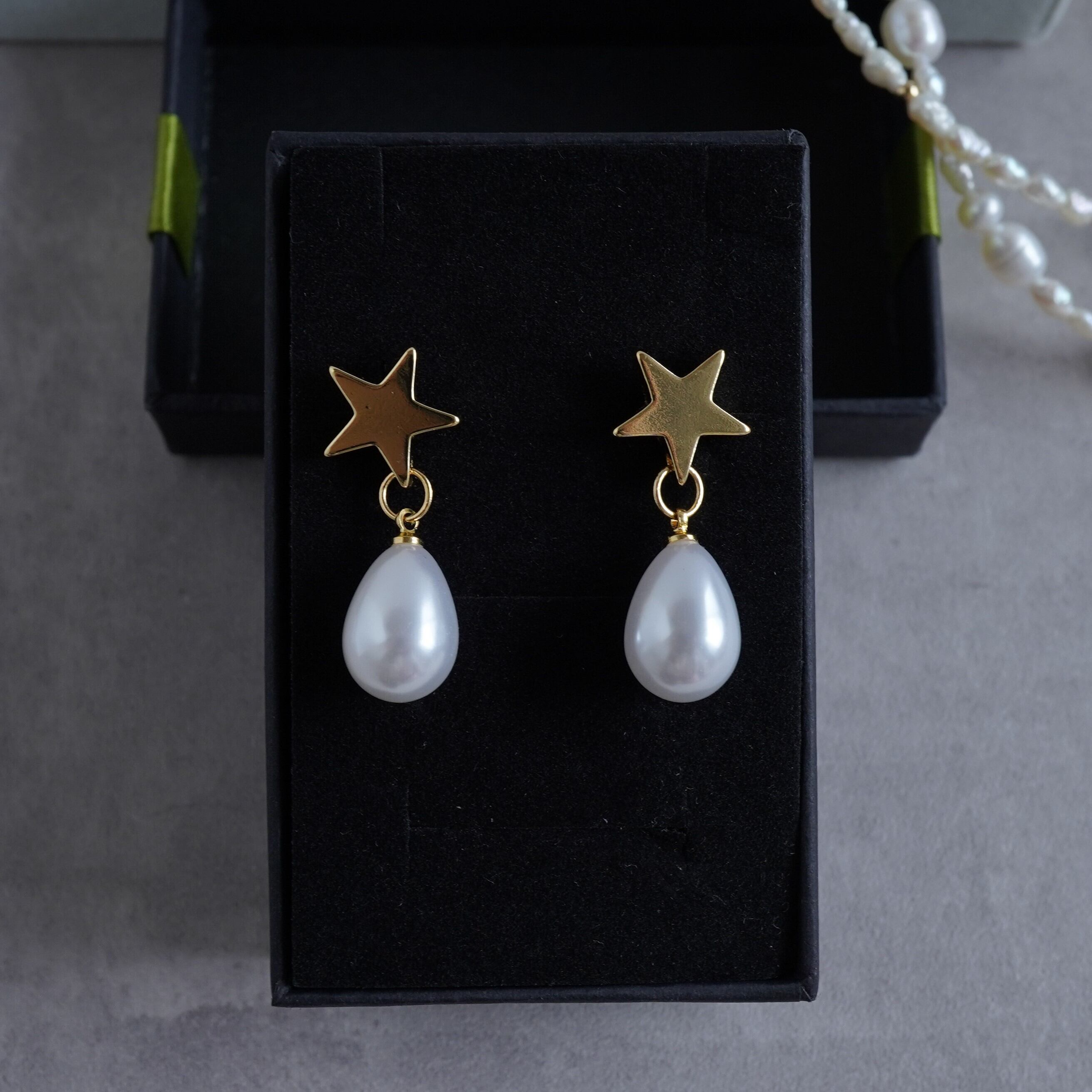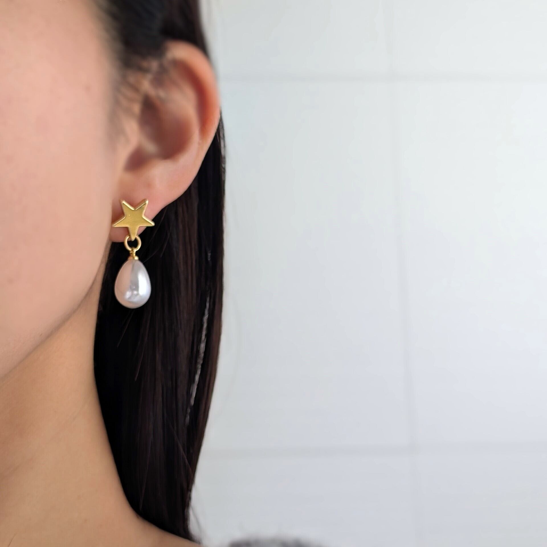 星のドロップパールピアス