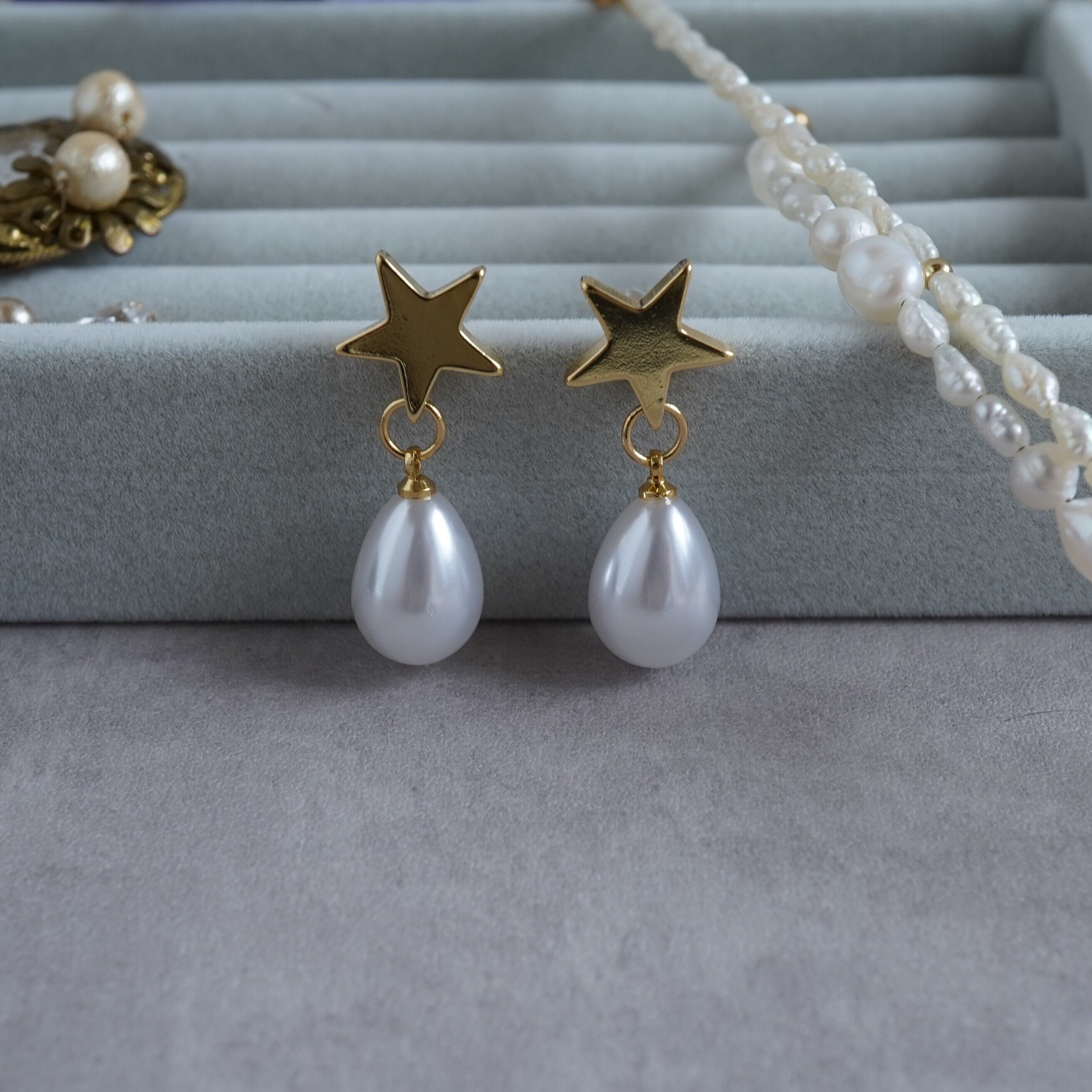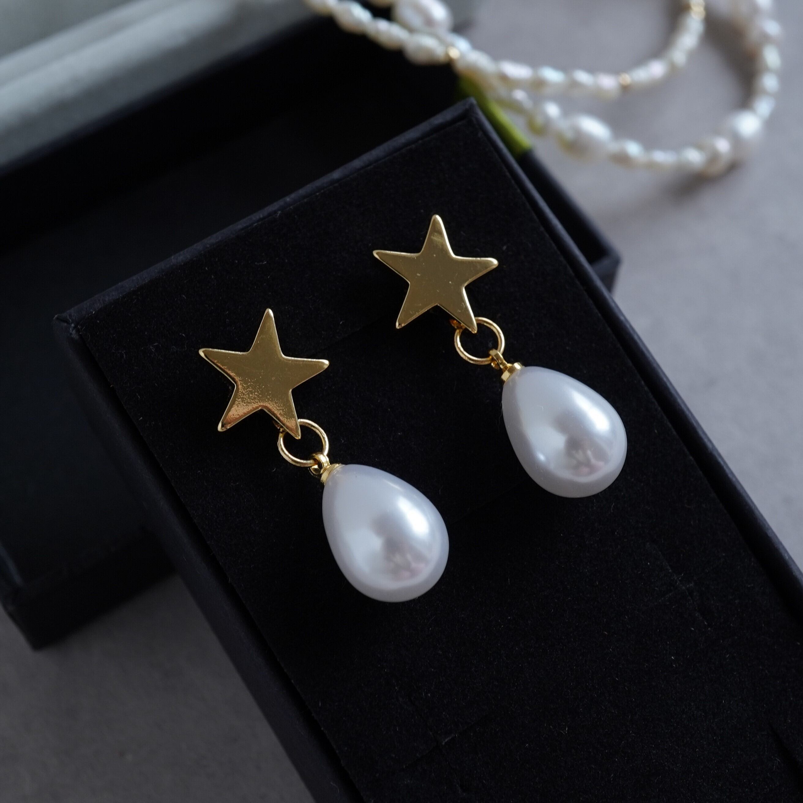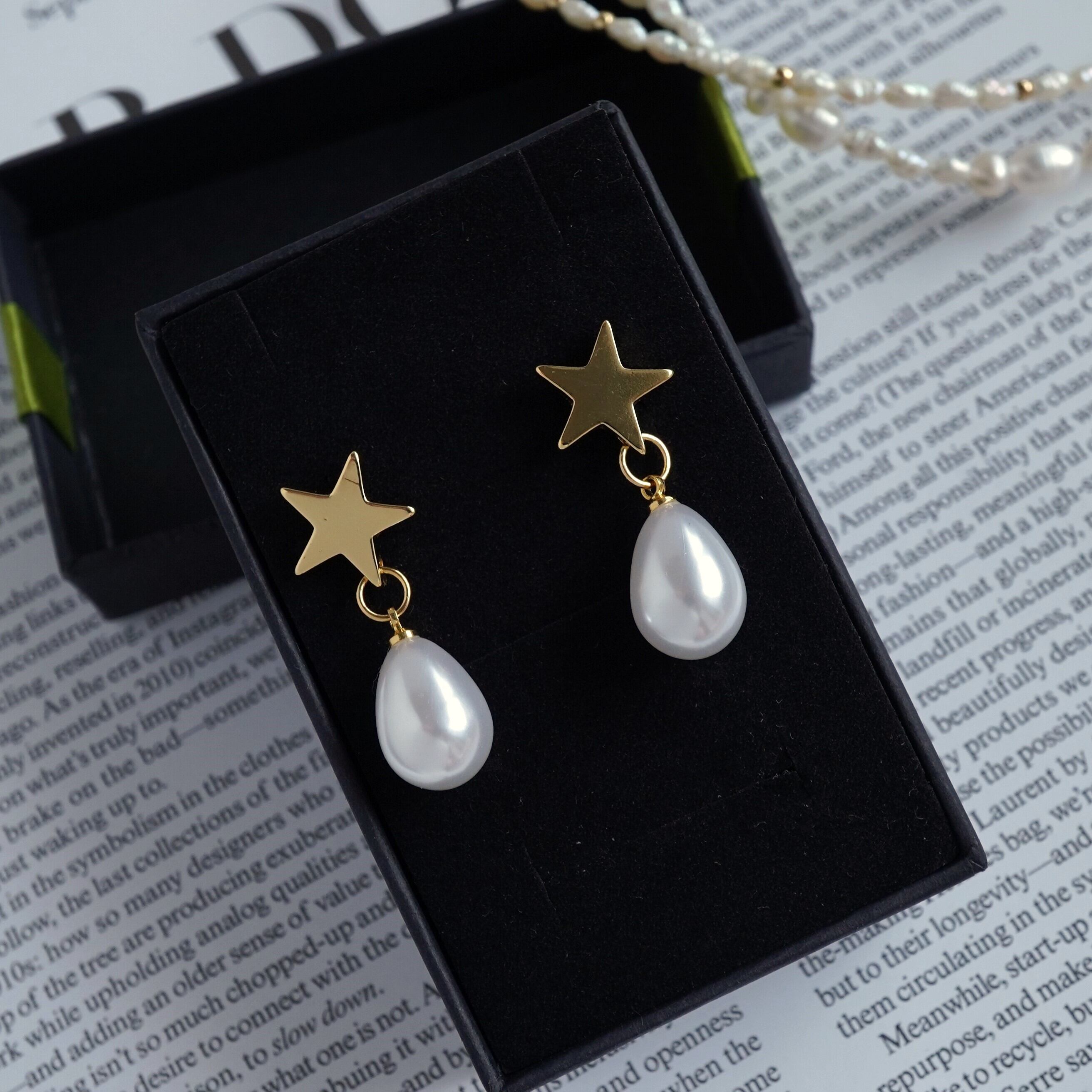 星のドロップパールピアス