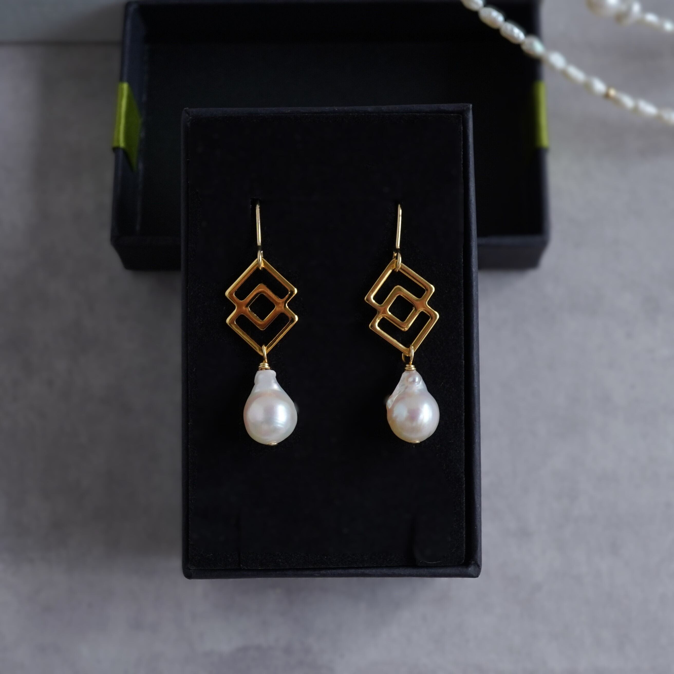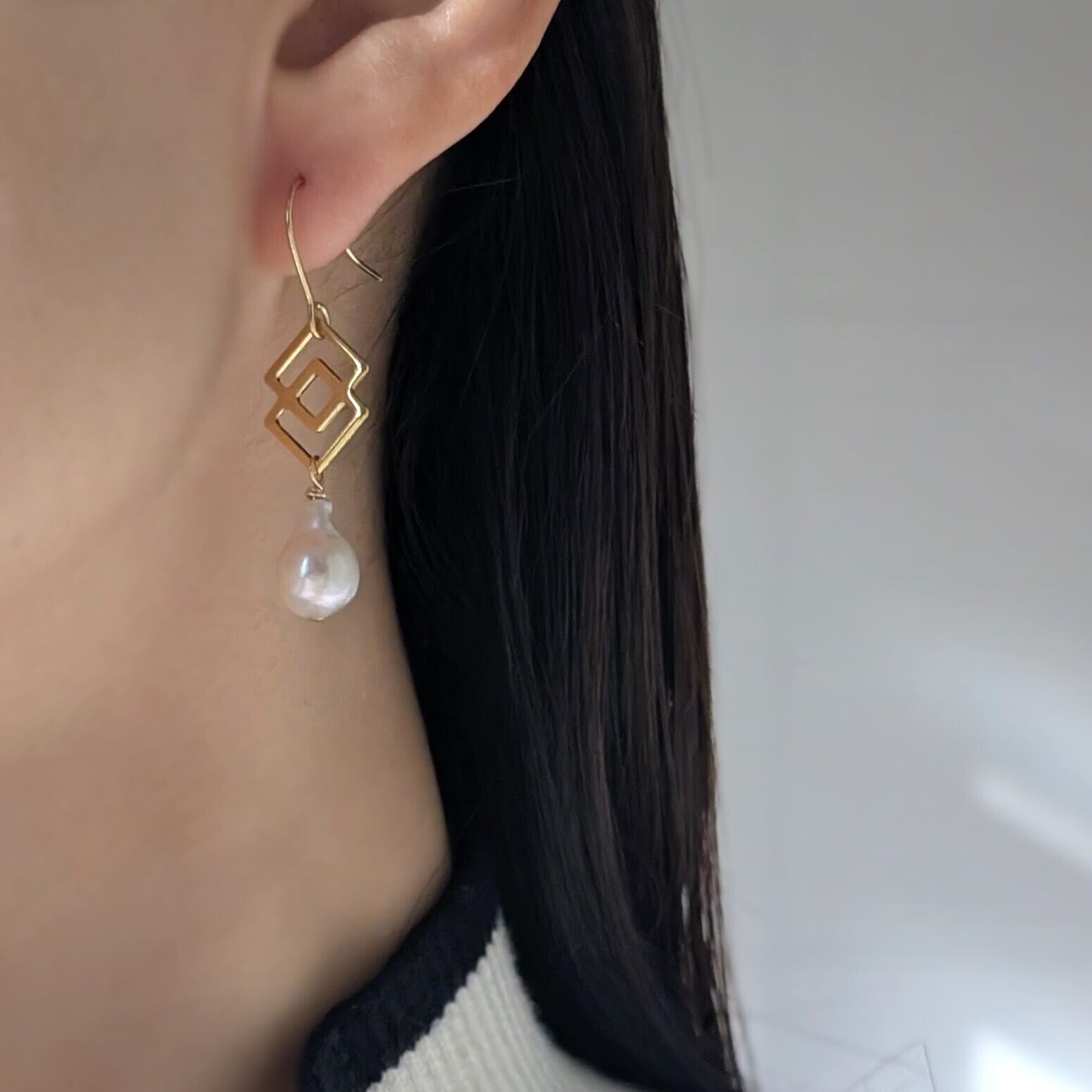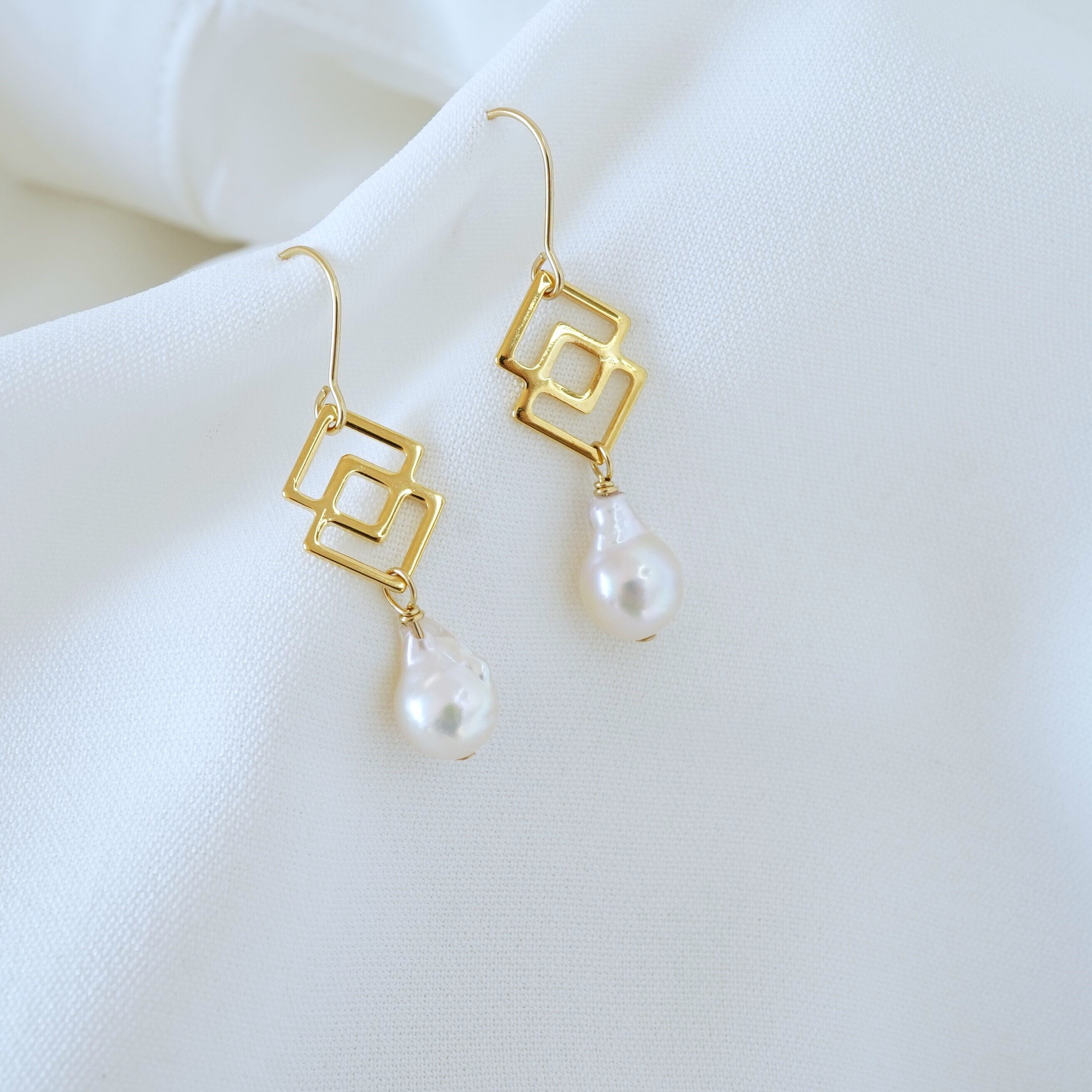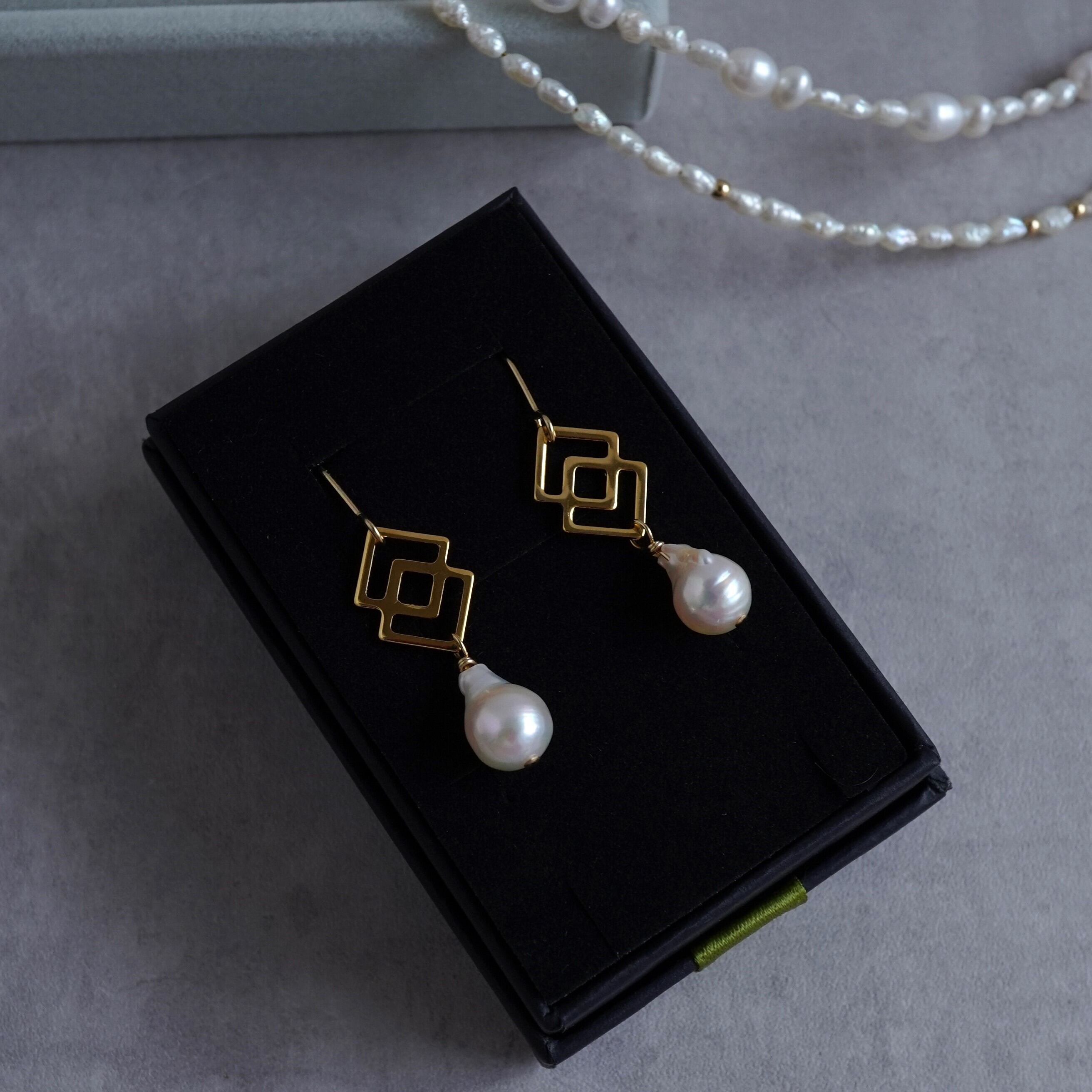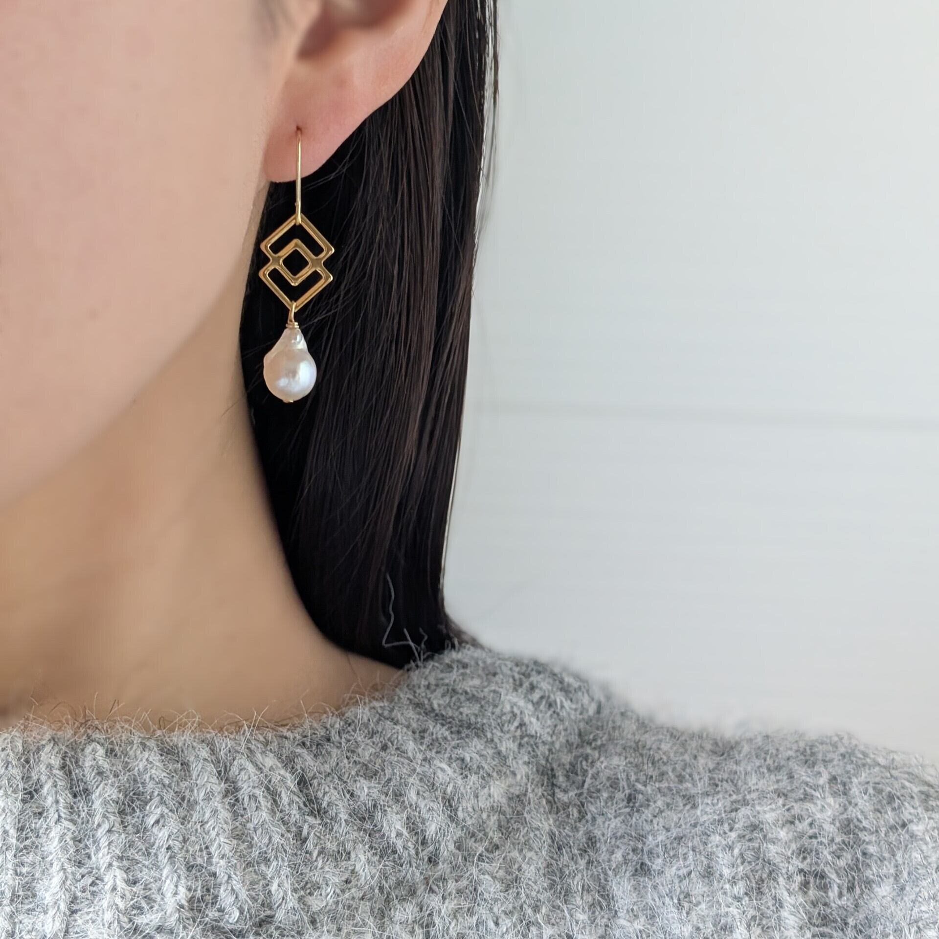 バロックパール(あこや真珠)にモダンなデザインを合わせたピアスです。