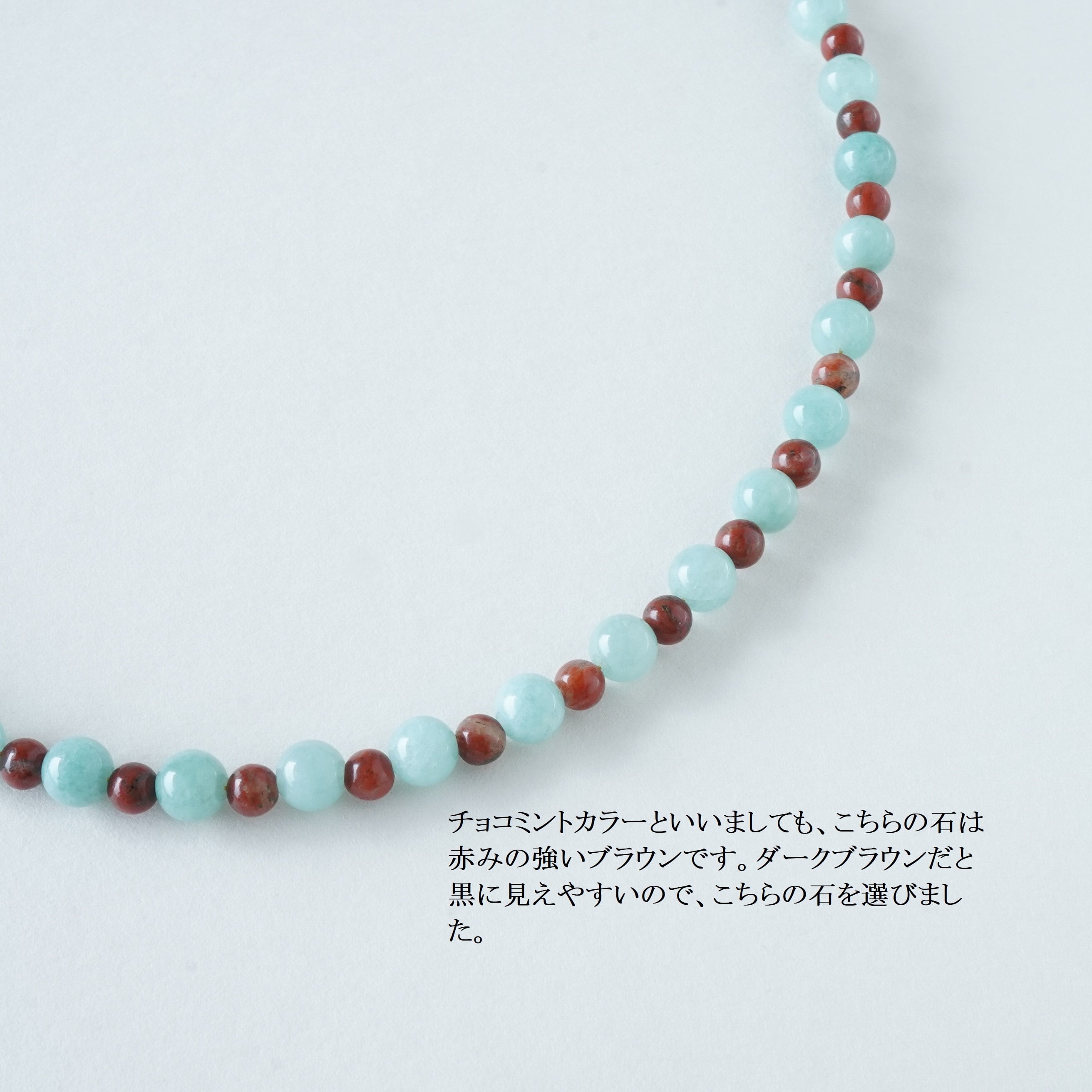 赤みブラウンと合わせチョコミントをイメージした色合いに。