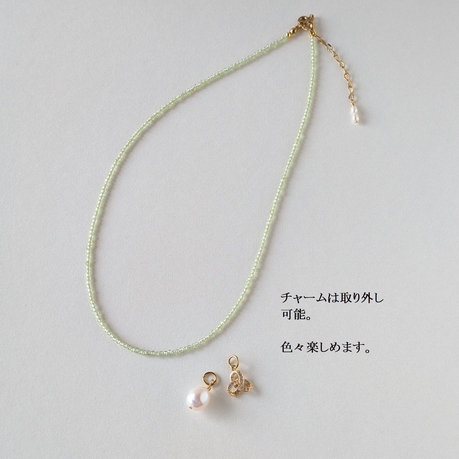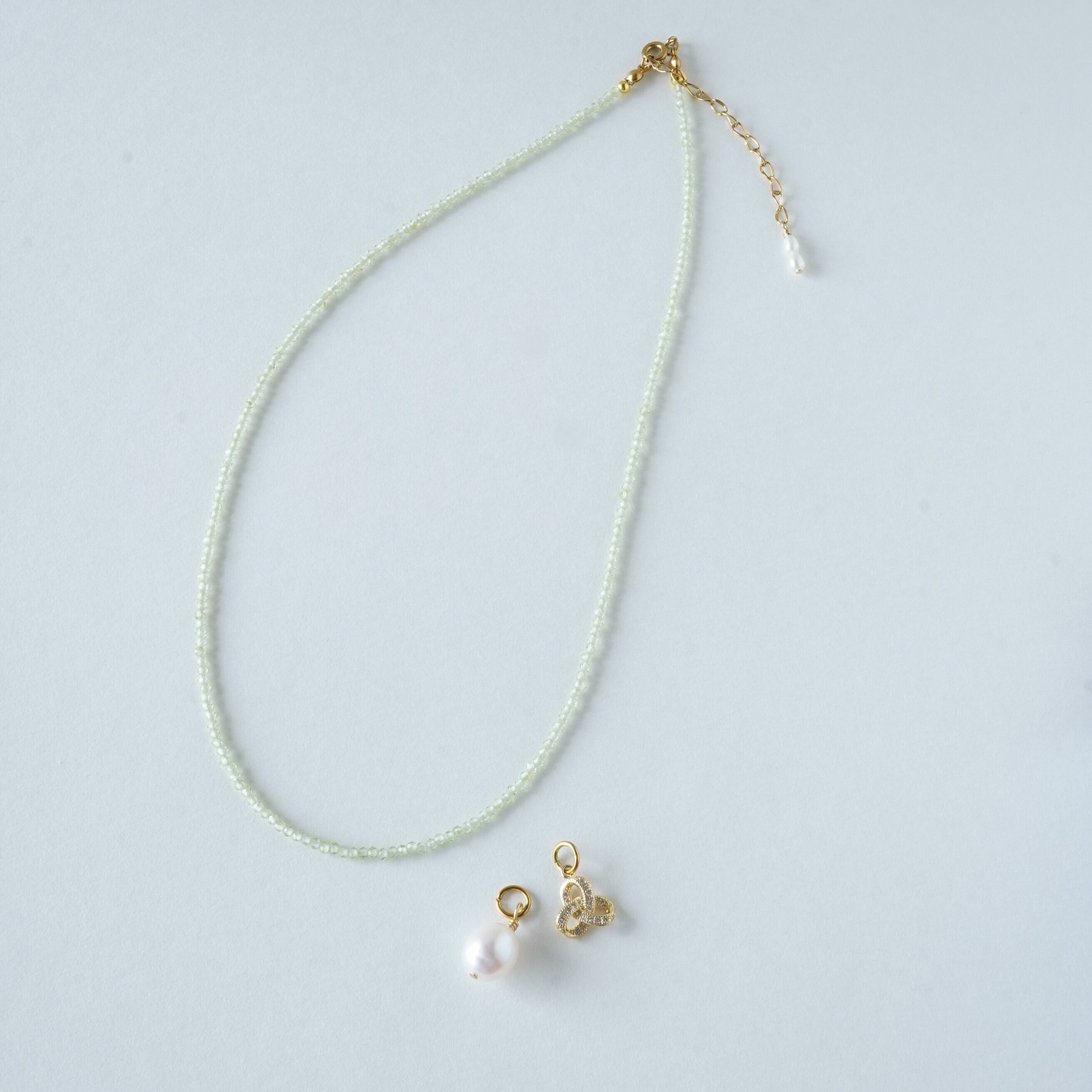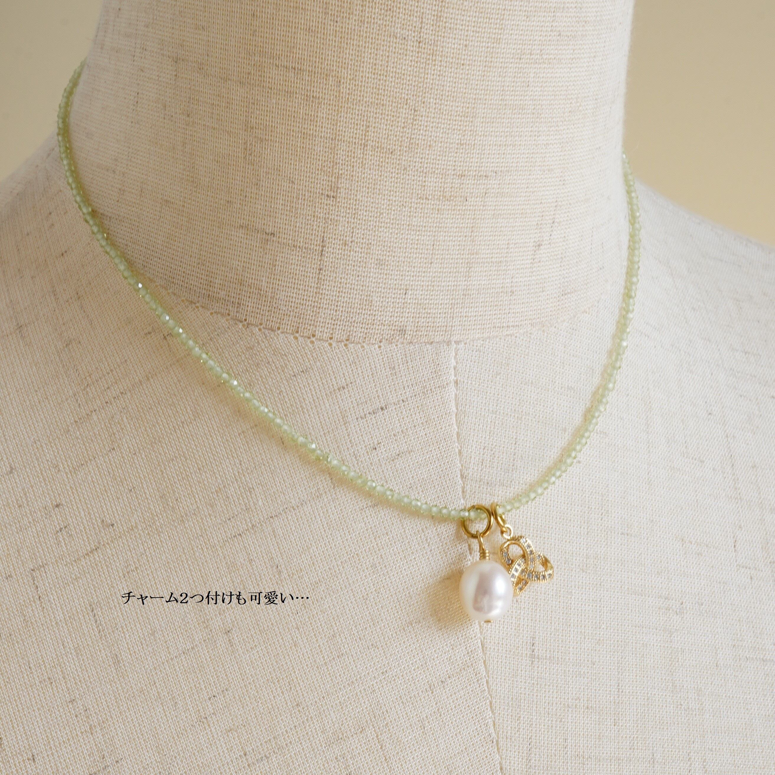 素材 天然石ペリドット・淡水パール・CZチャーム(真鍮18kgp)