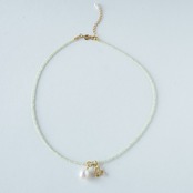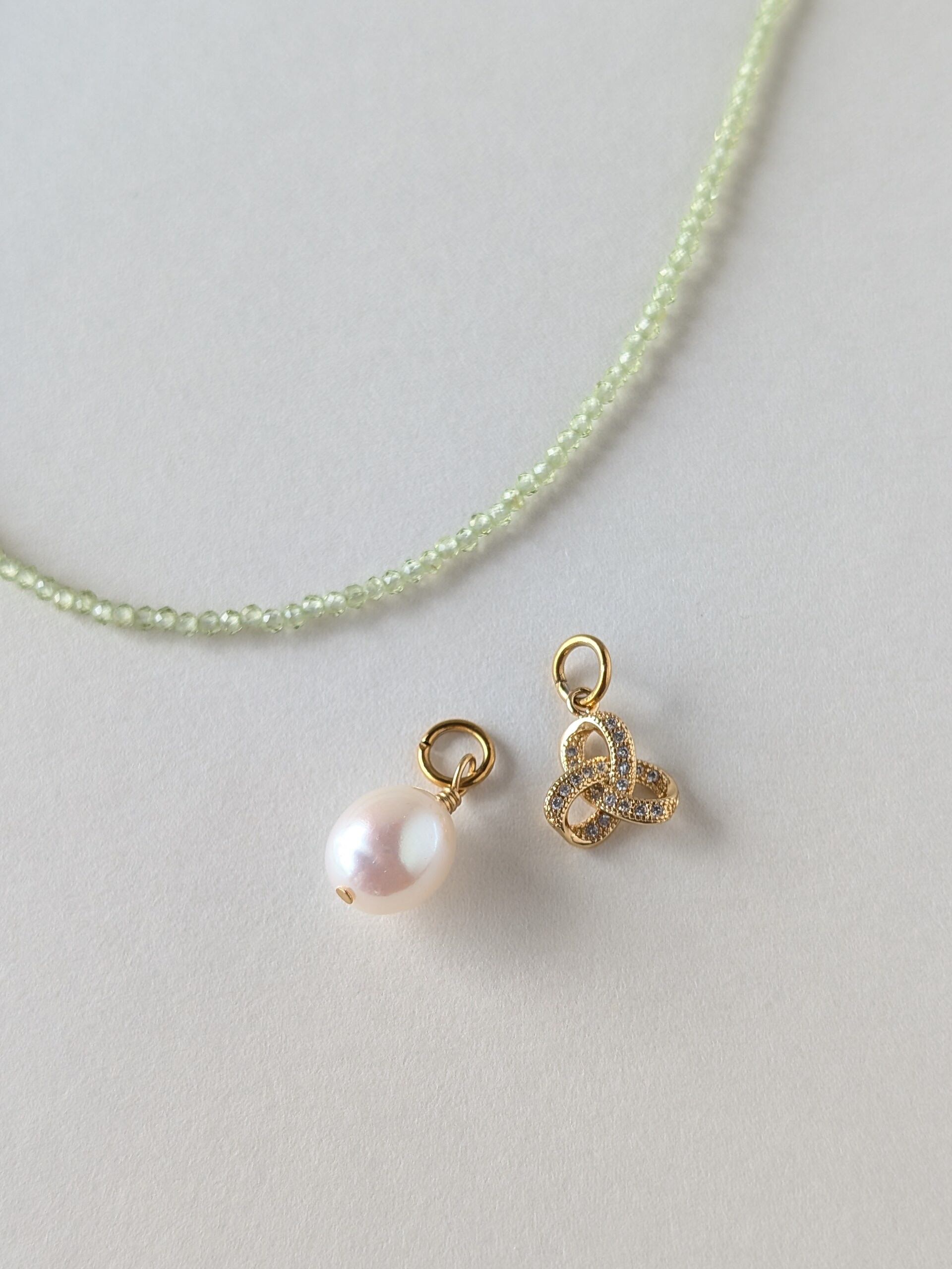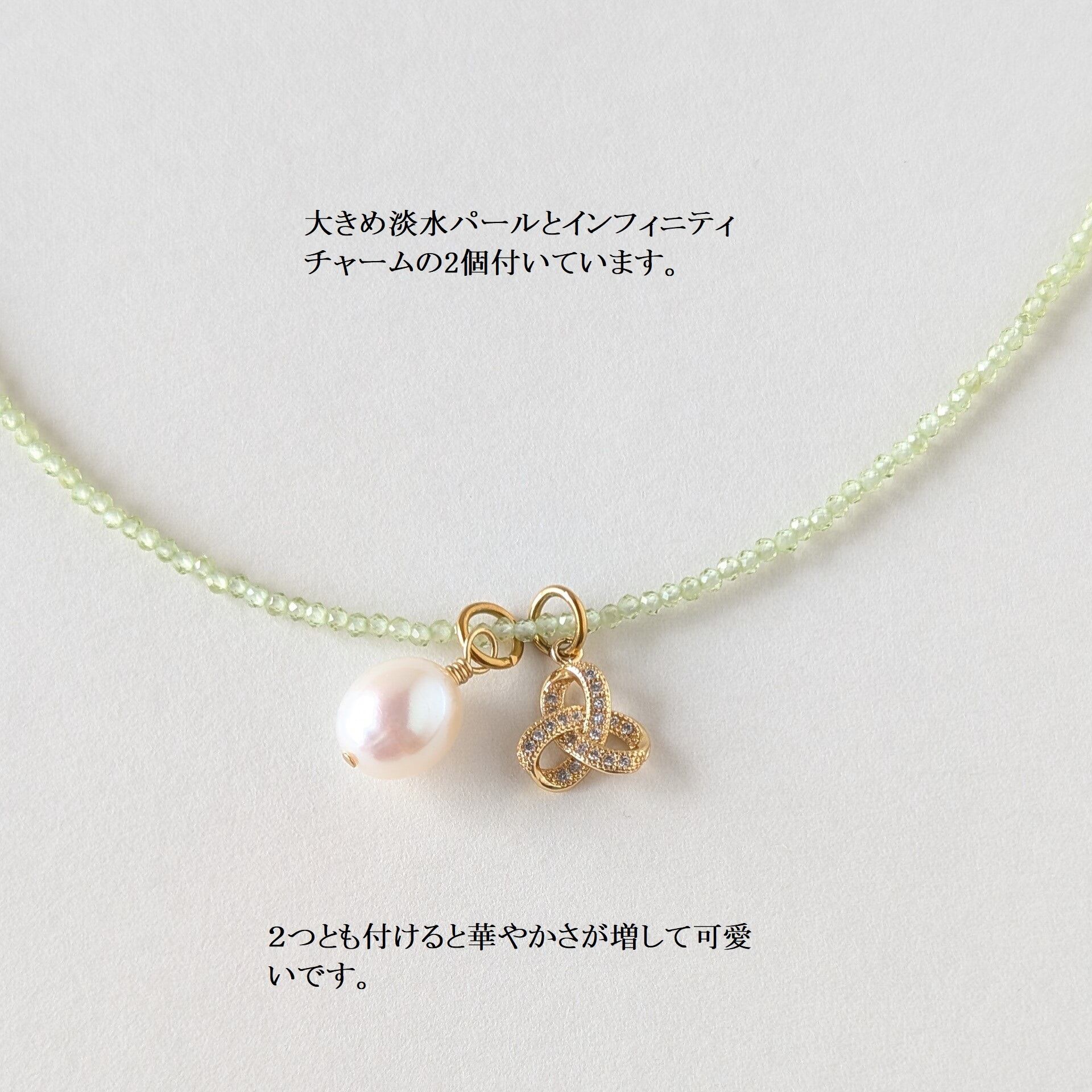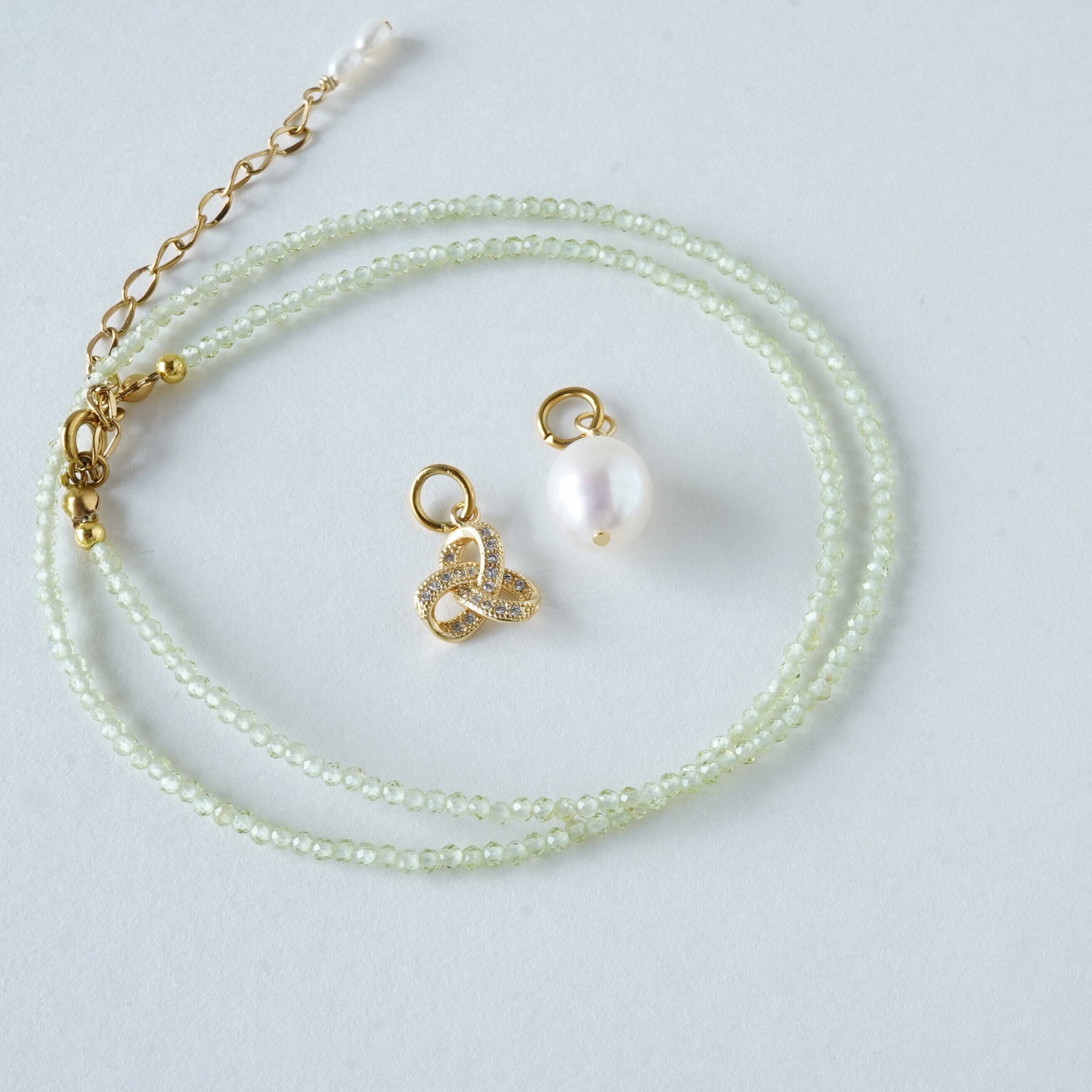 素材 天然石ペリドット・淡水パール・CZチャーム(真鍮18kgp)