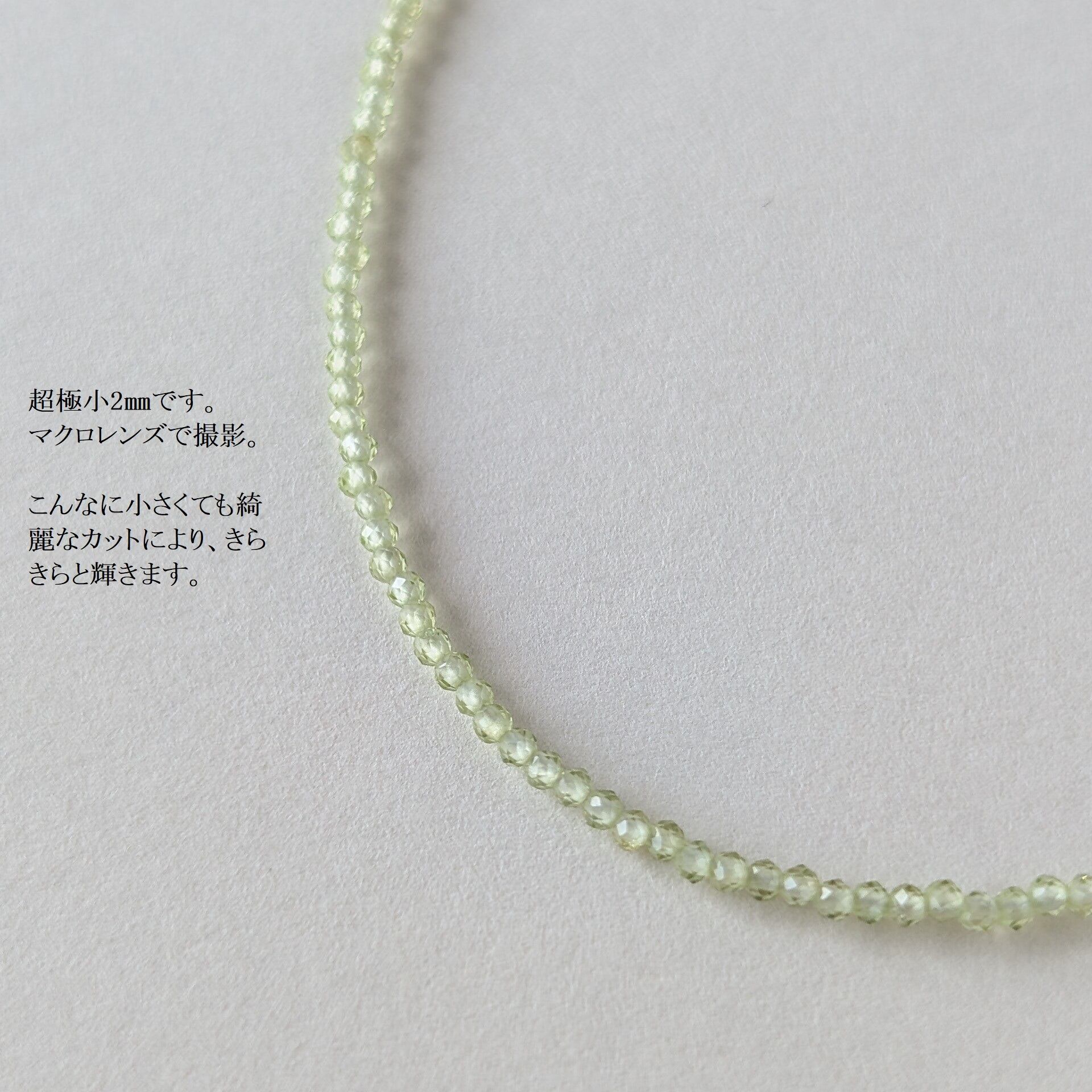 極小2㎜。ペリドットのネックレスです。