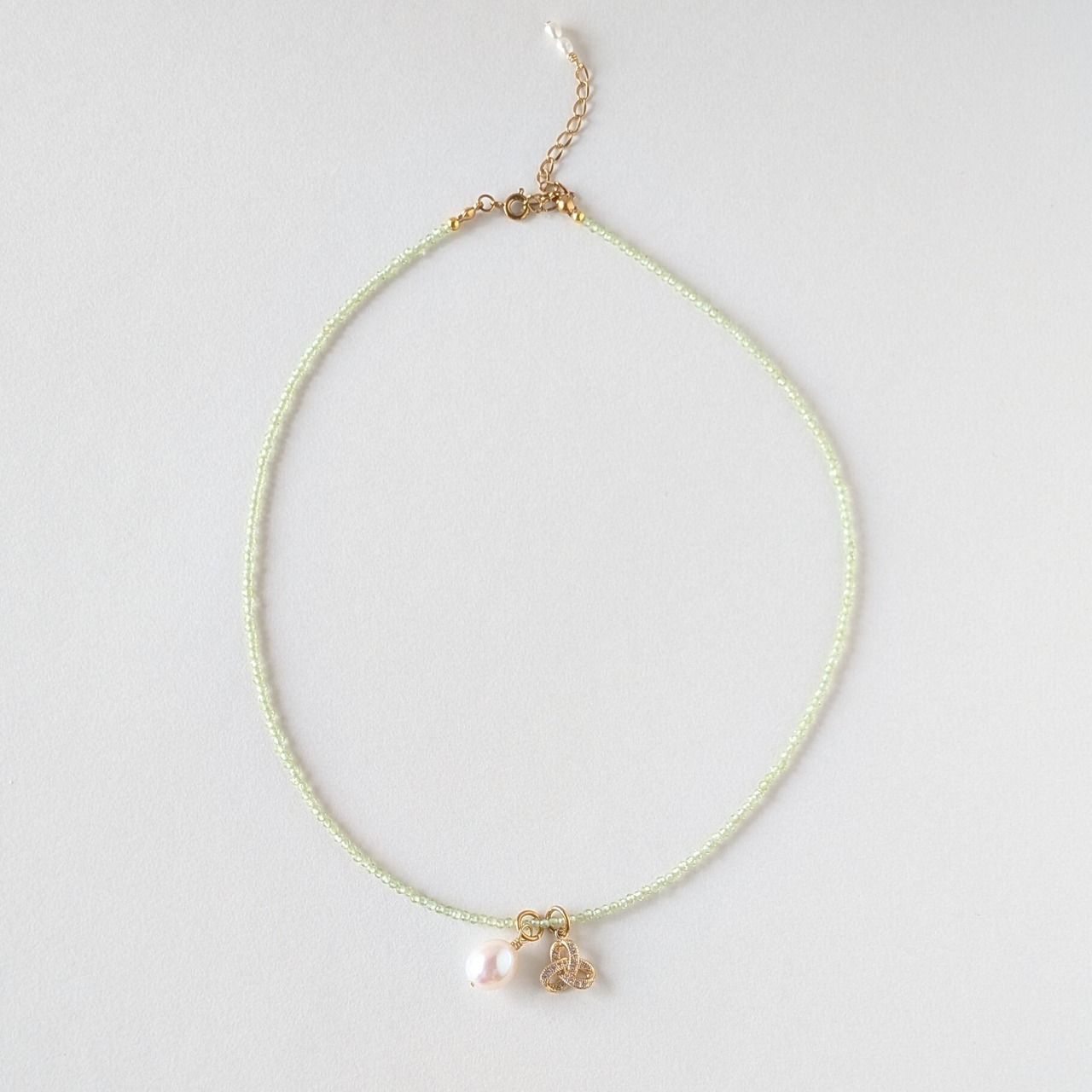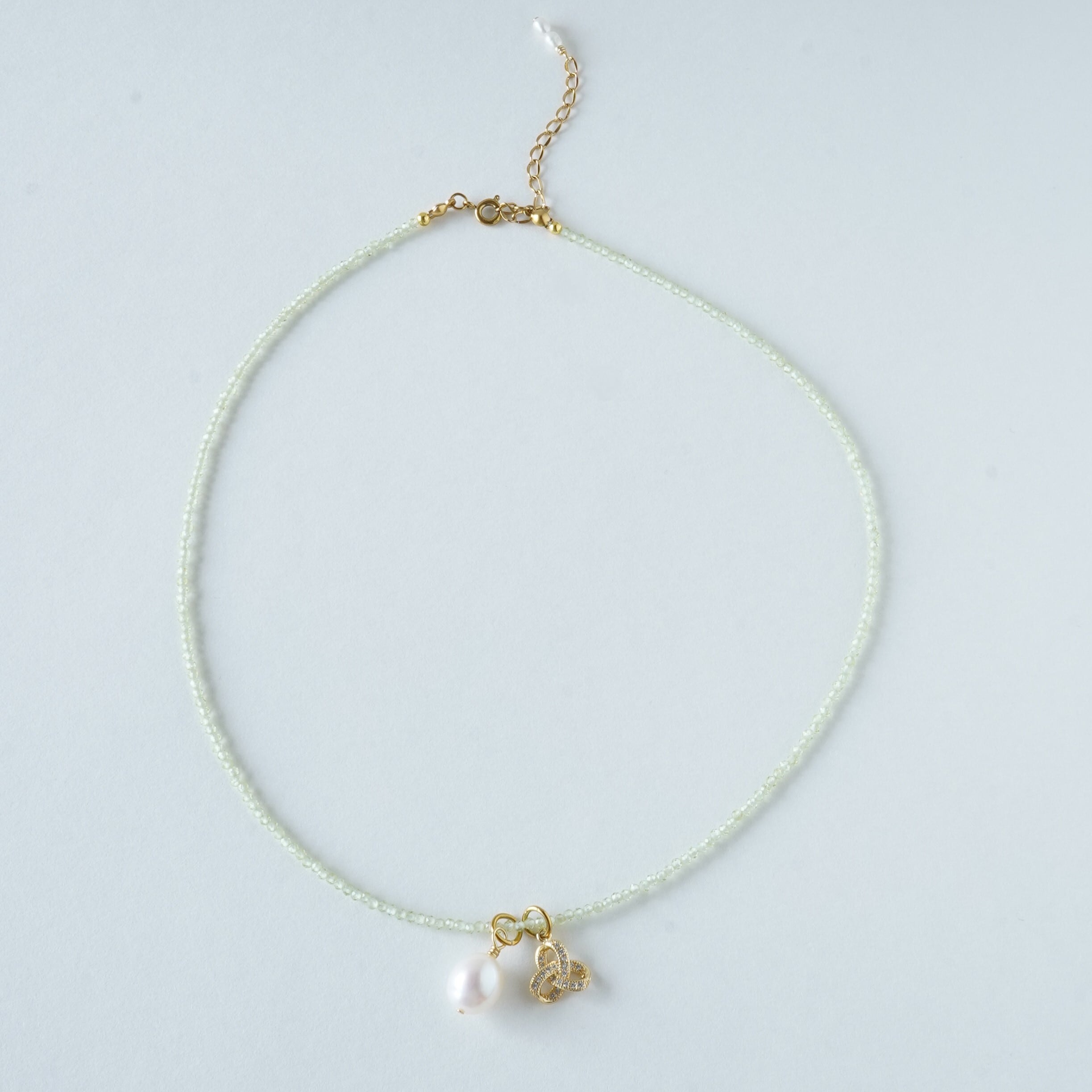 Triquetra 極小2㎜ペリドットのネックレス サージカルステンレス アジャスター付き