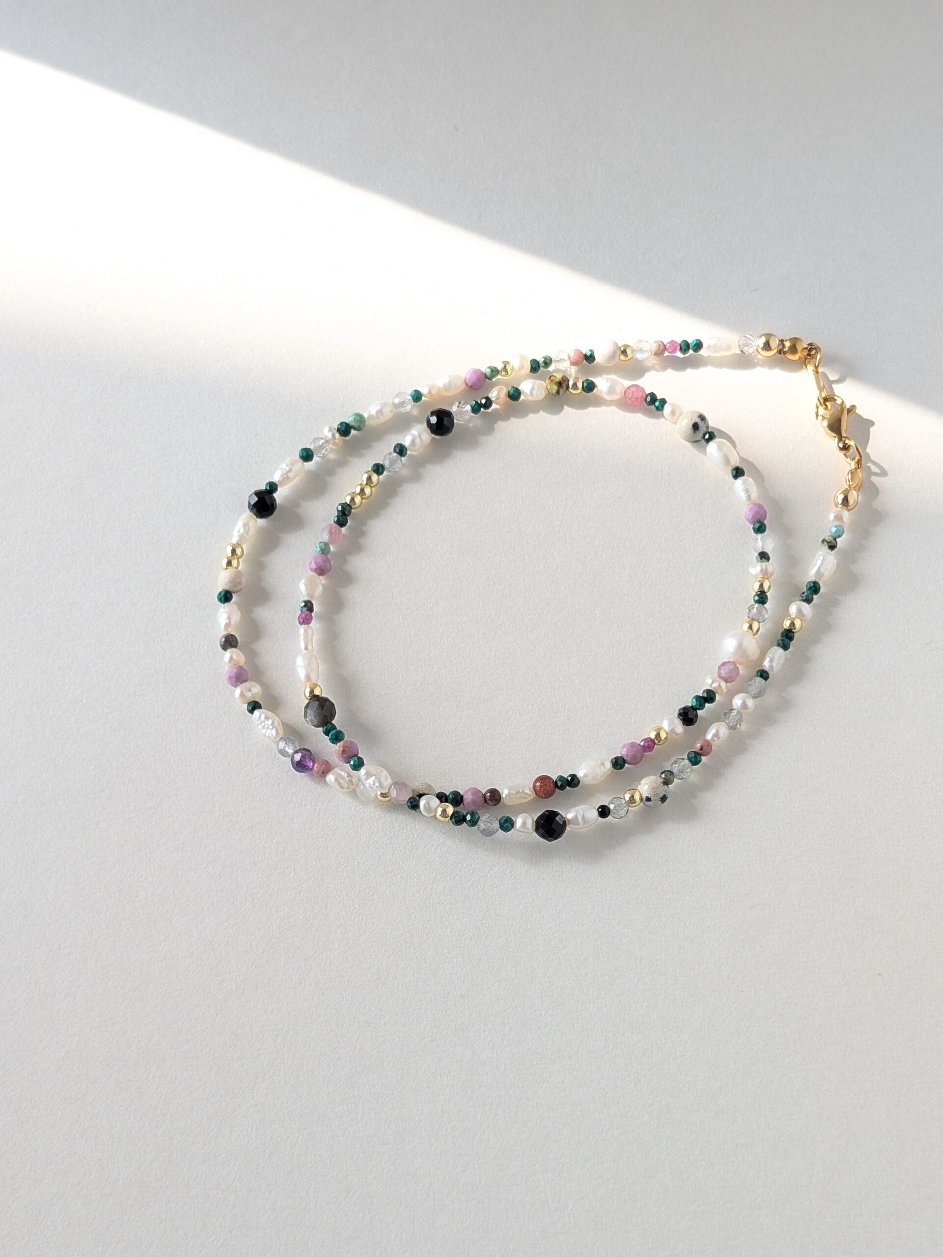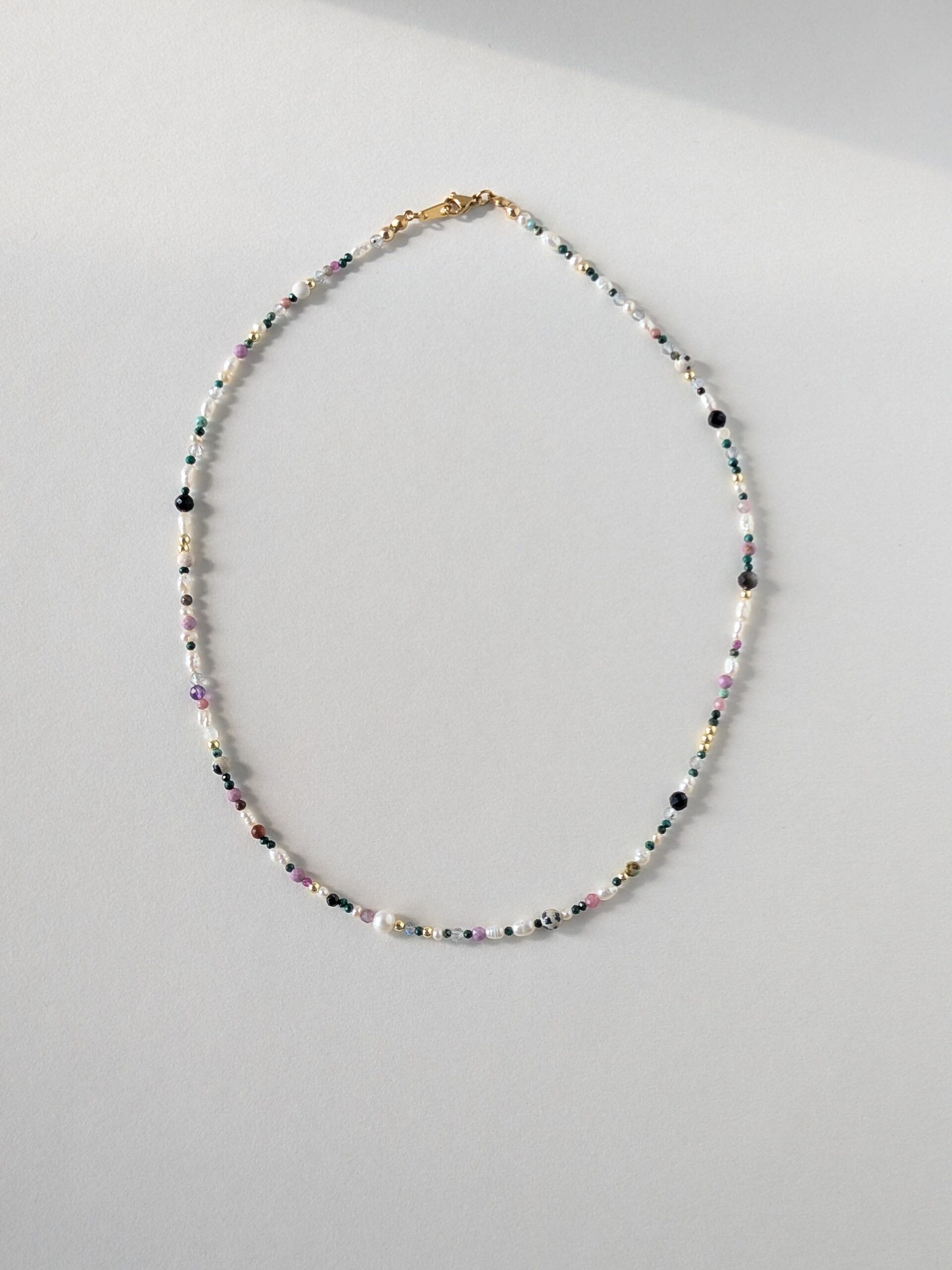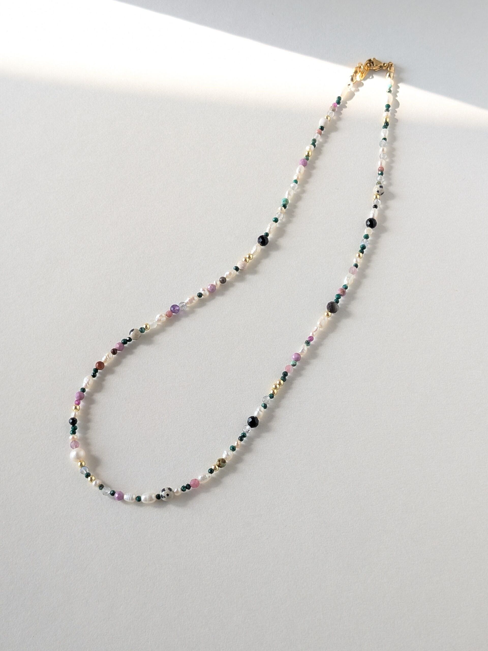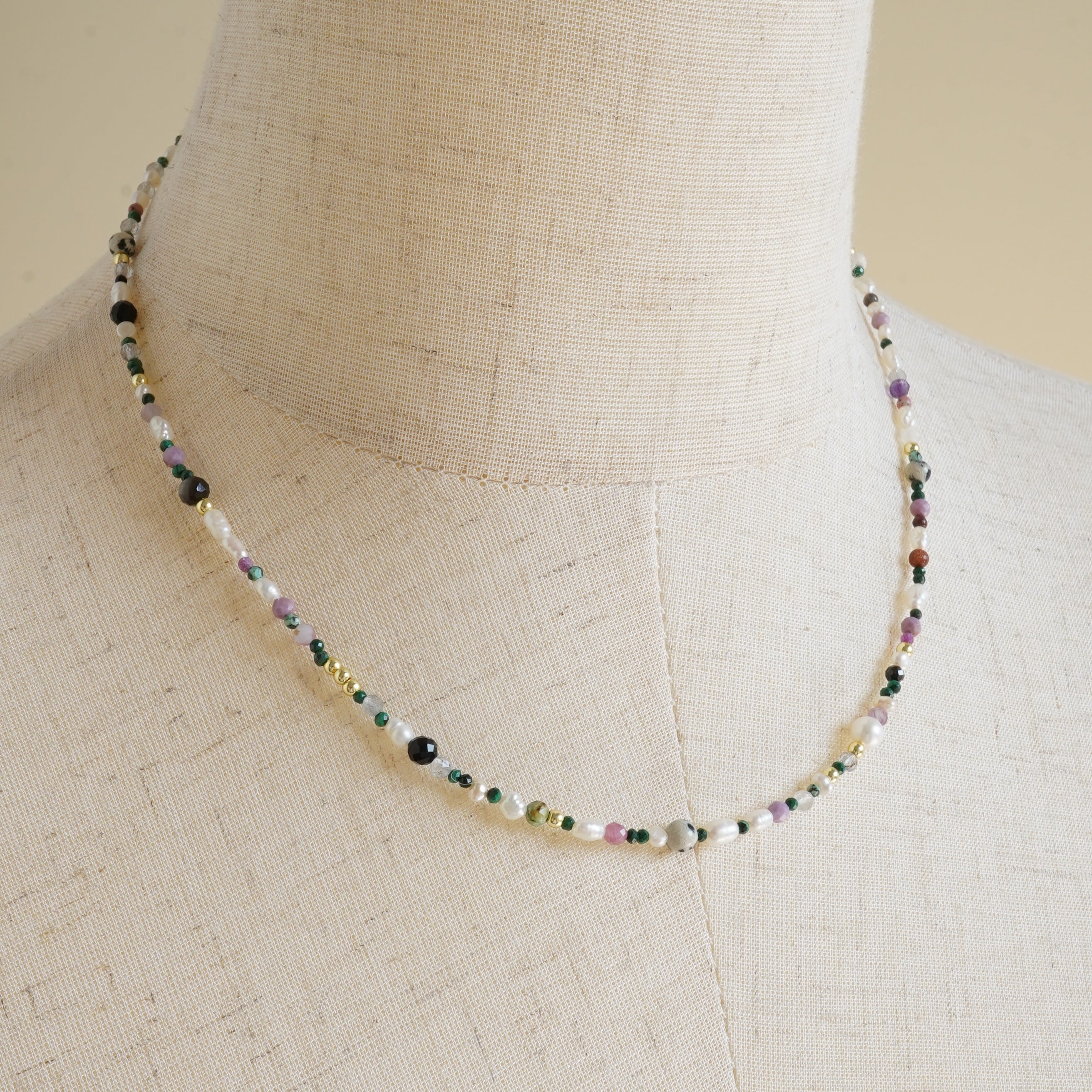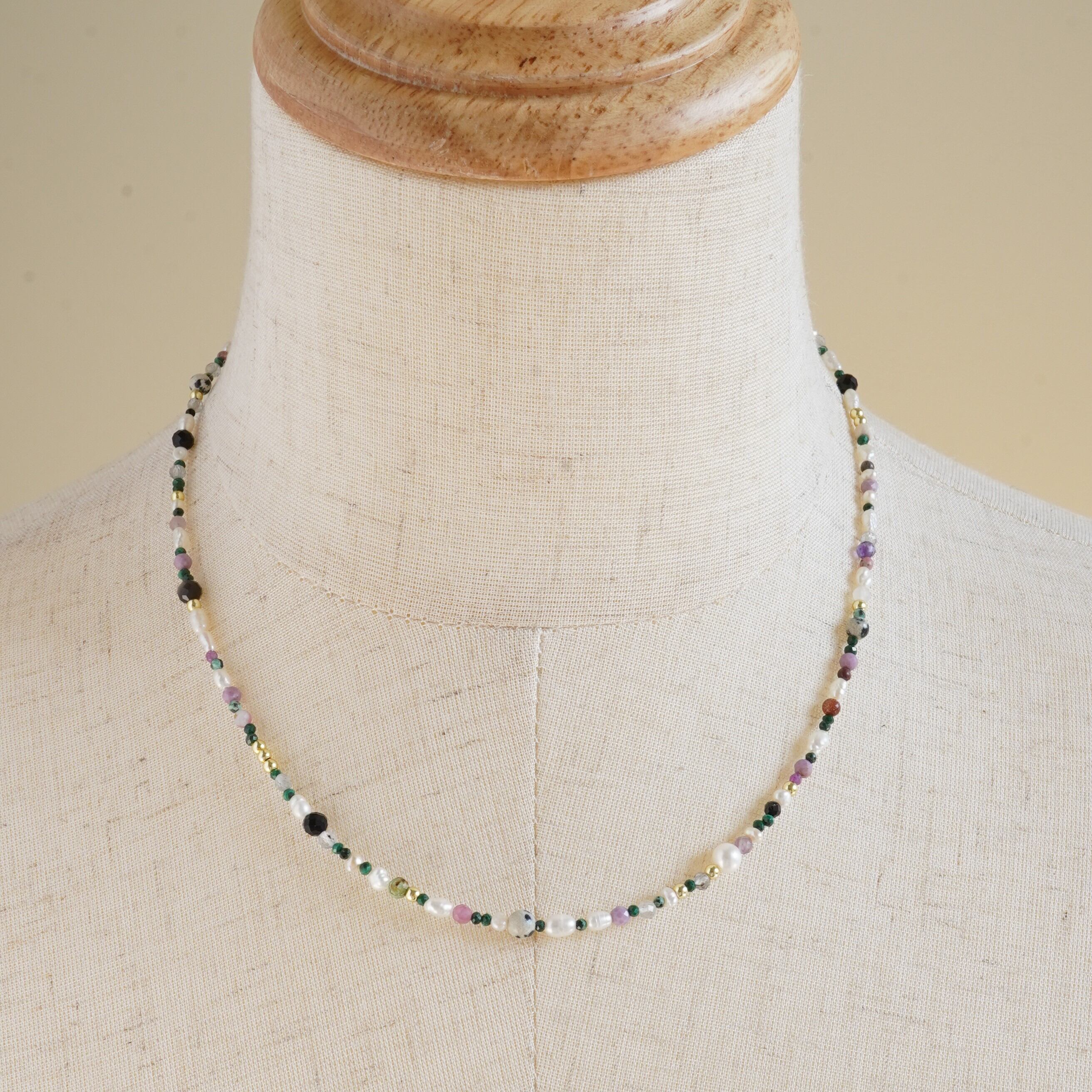 2㎜~4㎜ほどの天然石をmixしたネックレスです。