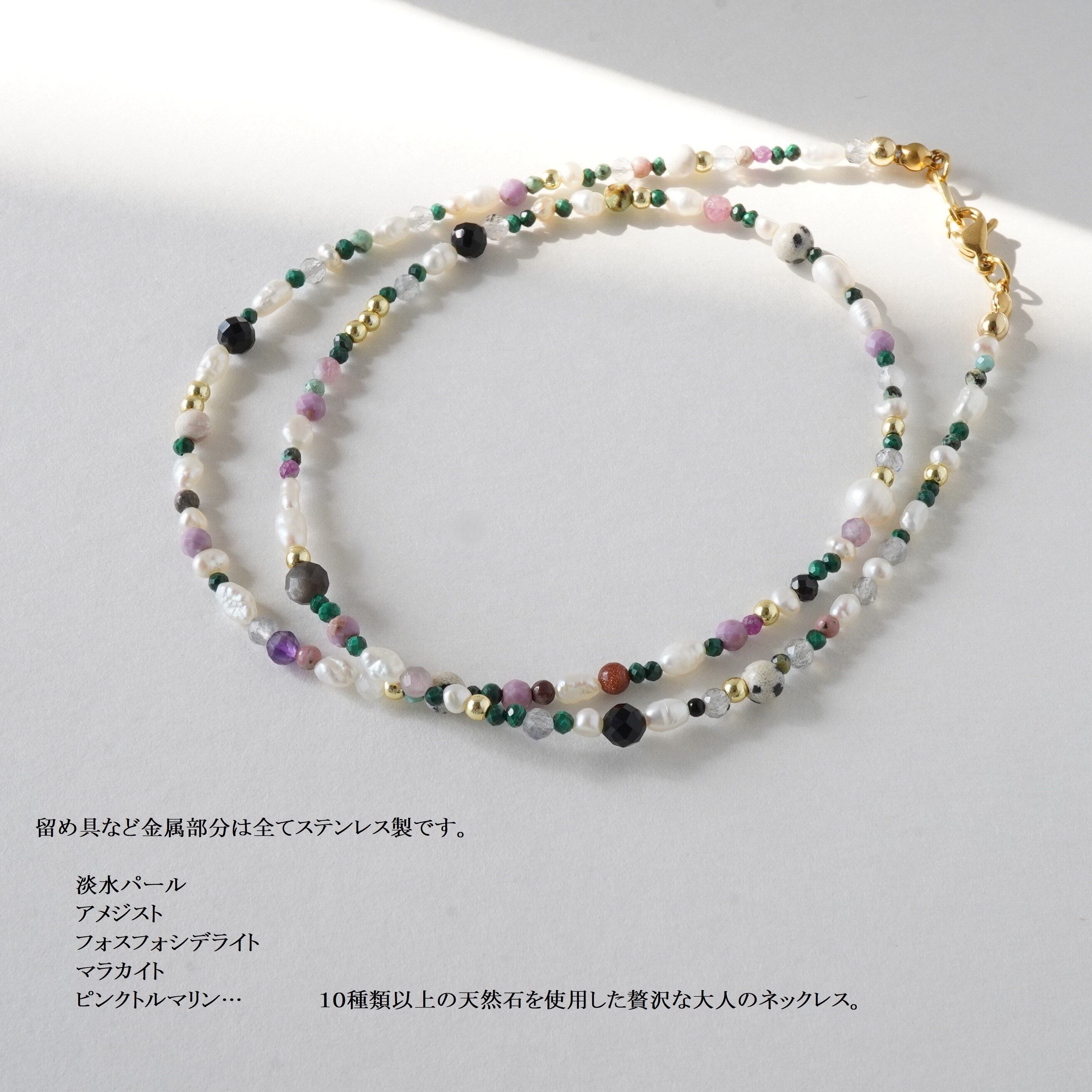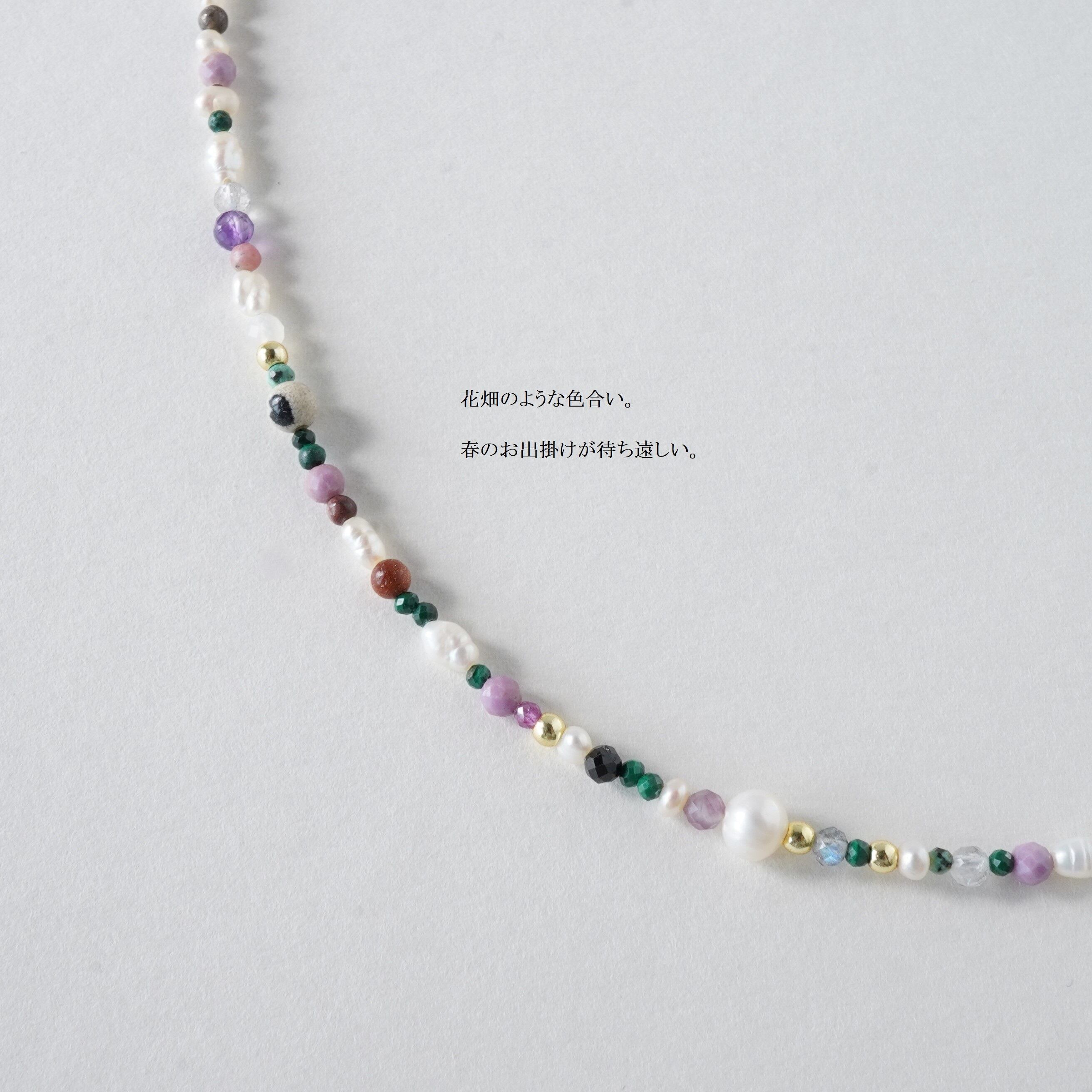 ✿お花畑 天然石mixネックレス サージカルステンレス