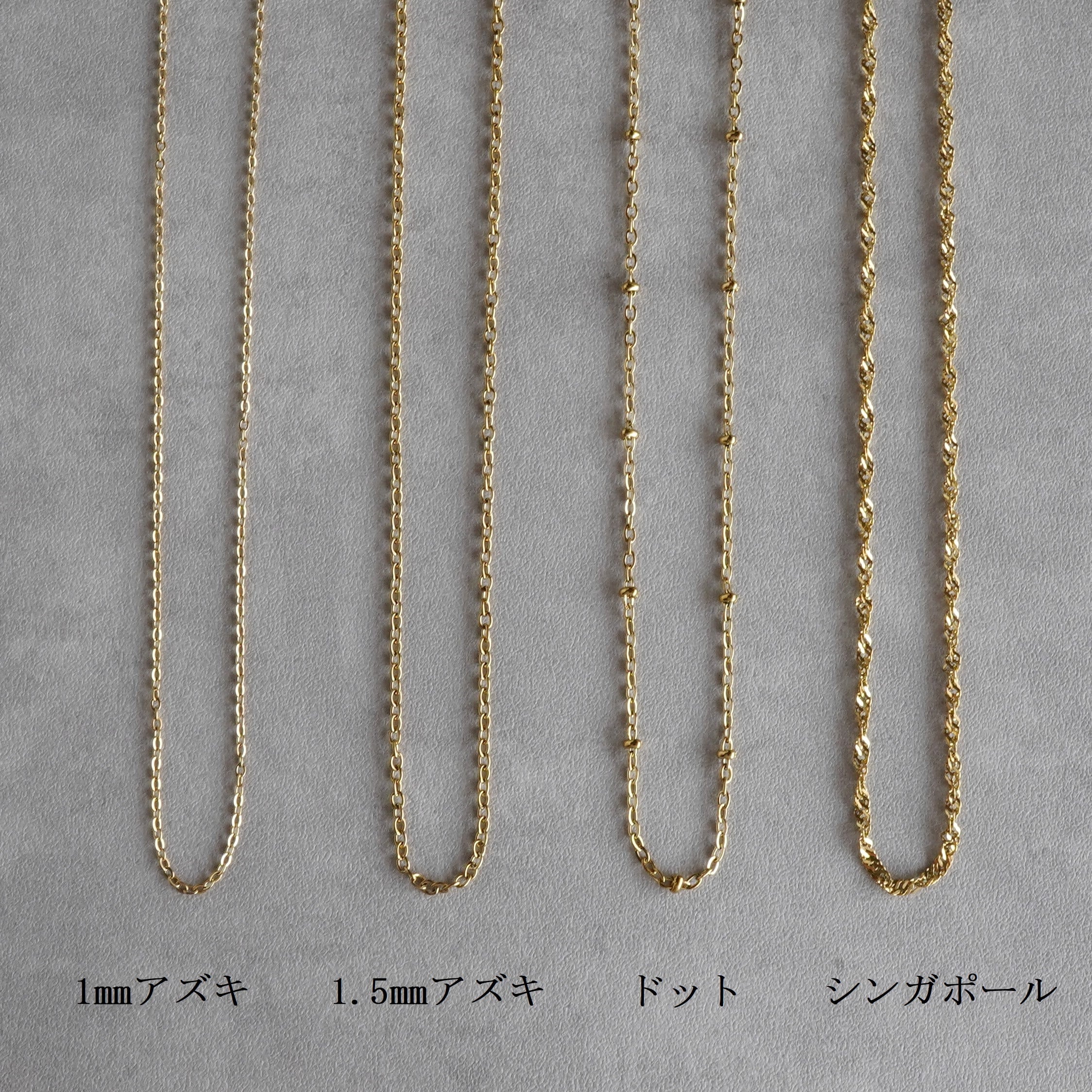 ※何も選択のない場合は、アズキチェーン(1㎜)・40㎝でのお届けになります。